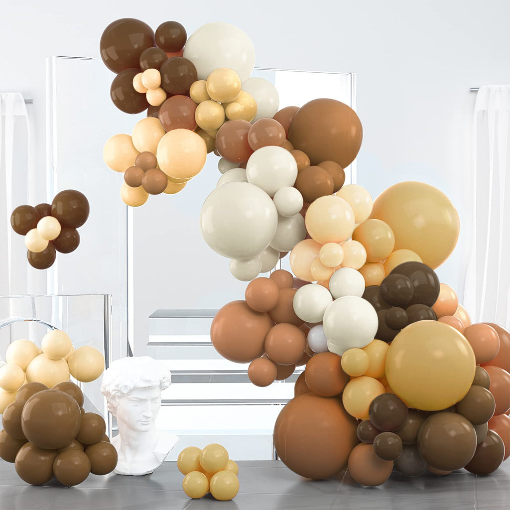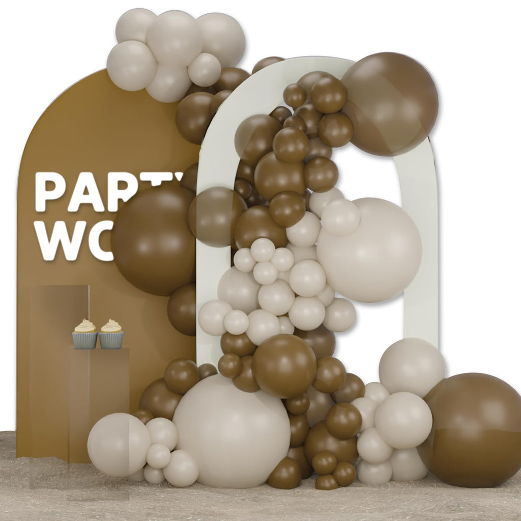 PartyWoo Brown Balloon Arch Kit Garland 100 pcs Shades of Brown Neutral Boho Tan Balloons Different Sizes of 18 12 10 5 Inch for Baby Shower Safari Wedding Anniversary Birthday Party Decorations