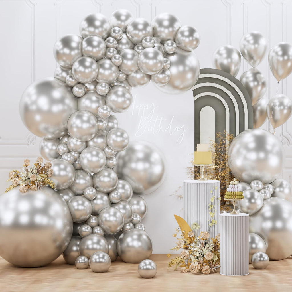 PartyWoo Silver Balloons 127 pcs Different Sizes of 36 18 12 10 5 Inch Silver Balloon Arch Kit Garland for Birthday Graduation Engagement Bachelorette Bridal Shower Party Decorations Silver-G102
