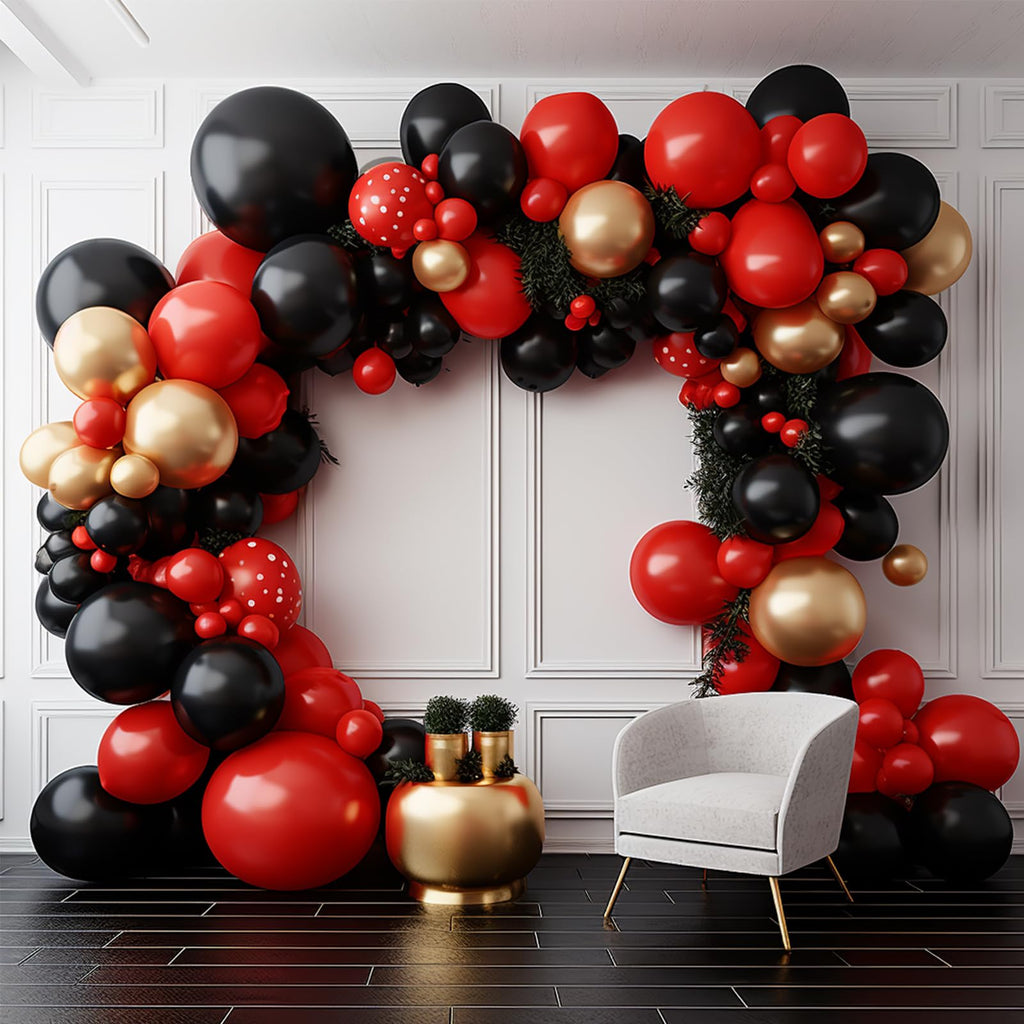 PartyWoo Red Black Gold Balloons, 140 pcs Red Black and Chrome Gold Balloons Different Sizes Pack of 18 Inch 12 Inch 10 Inch 5 Inch for Balloon Garland as Graduation Decorations, Party Decorations