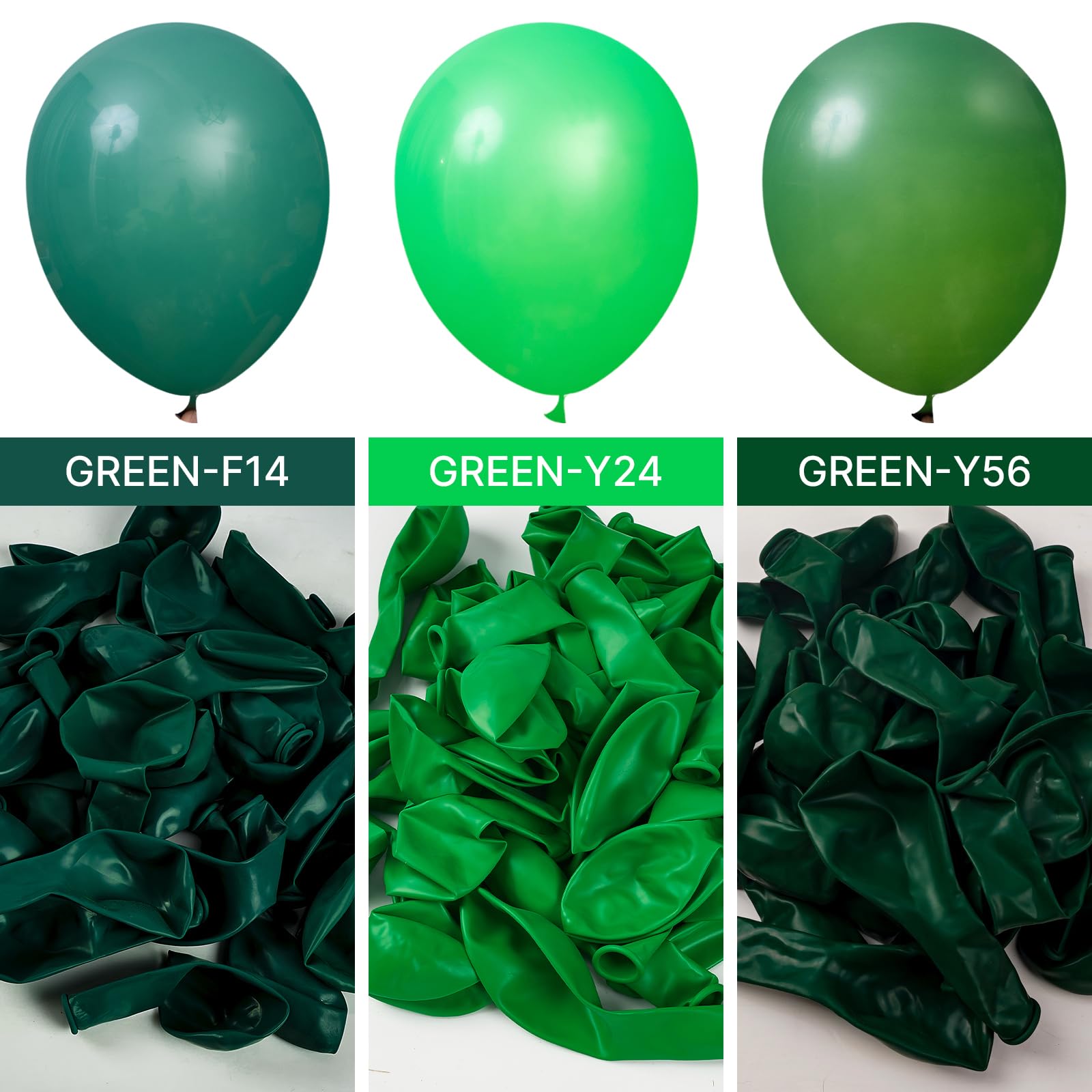 - 100 PCS GREEN BALLOONS DIFFERENT SIZES: Package includes 36 inch balloon (1 pc), 18 inch balloons (3 pcs), 12 inch balloons (20 pcs), 10 inch balloons (20 pcs), 5 inch balloons (56 pcs)