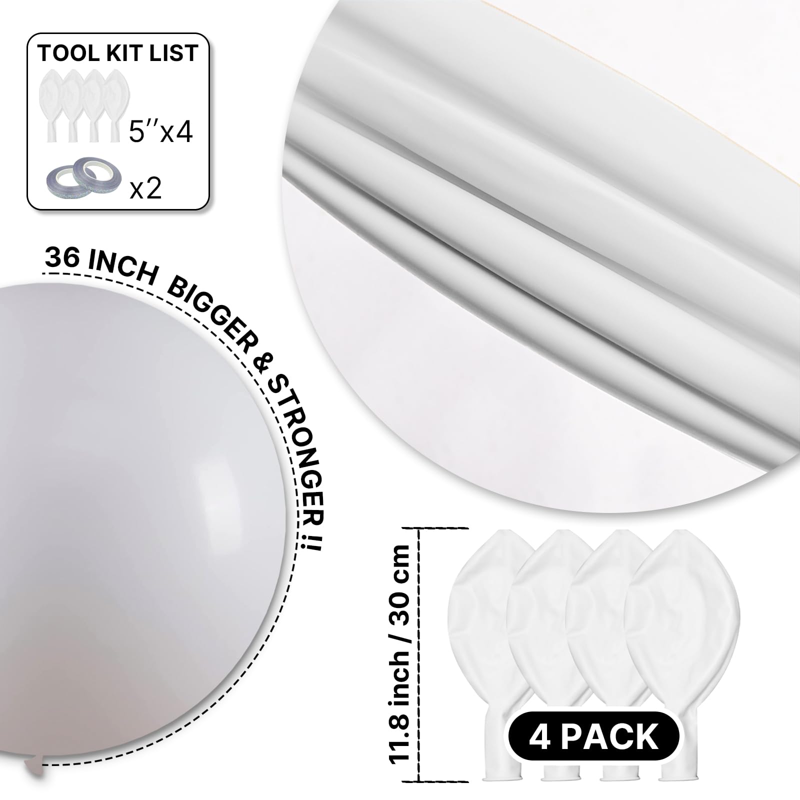 - Package includes: 36 inch white balloons (4 pcs), 5 inch white balloons (4 pcs), ribbons (2 pcs), in a solid consistent color that brings vibrant energy, can widely used in birthday decorations, wedding decorations, baby shower decorations.