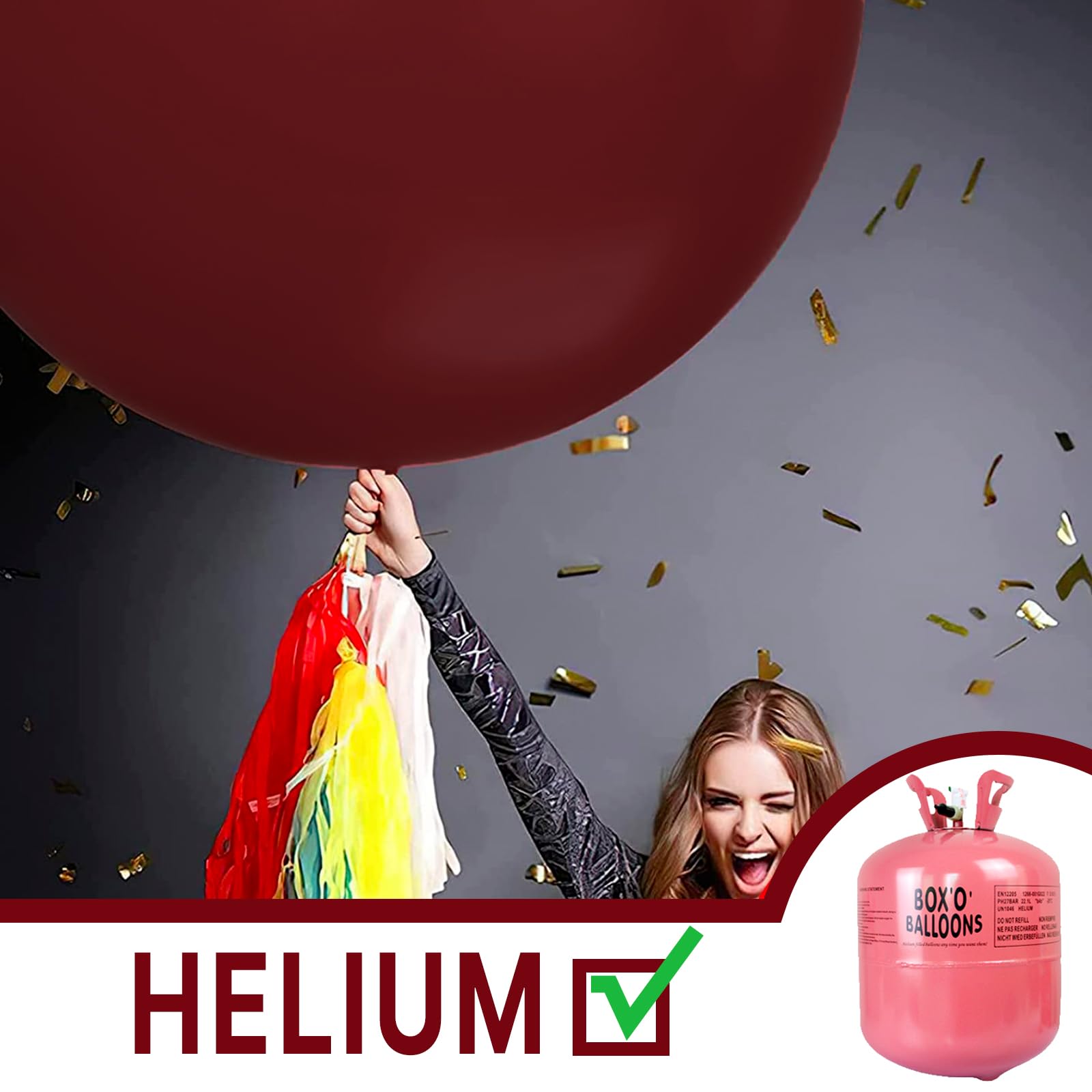 - What To Fill With: Burgundy balloons filled with AIR will stay full for up to 72 hours, while with HELIUM will stay full for 3-6 hours. For best float results, fill helium 1-2 hours before your event, can bring joy to birthday, baby shower decorations.