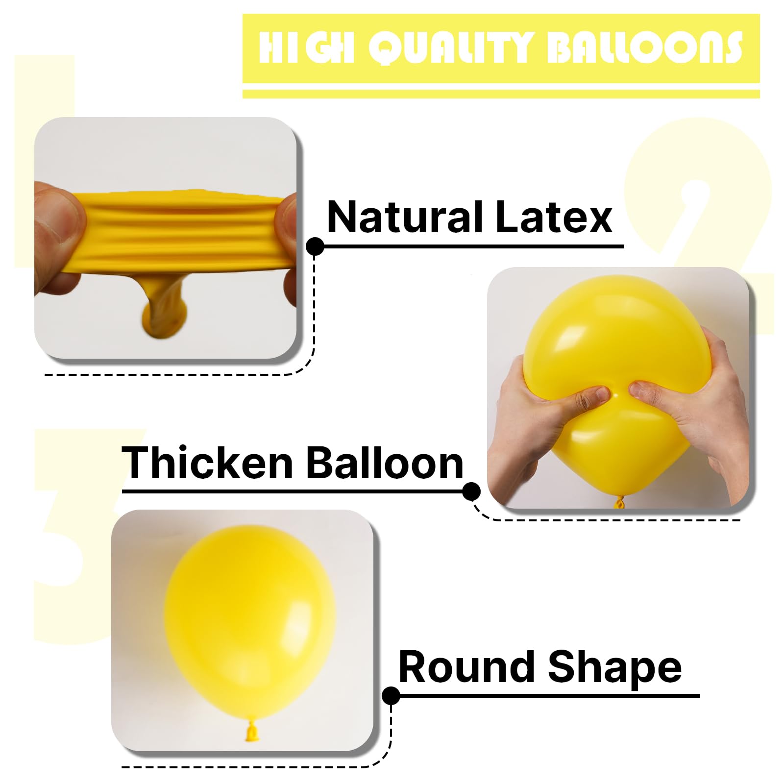 - Attention & Warning: Please DO NOT overfill the yellow balloons and also avoid sunburn, overheat, pointed object and excessive friction. Control the amount of air inflated into each balloon to achieve your ideal balloon size, enjoy your birthday party.