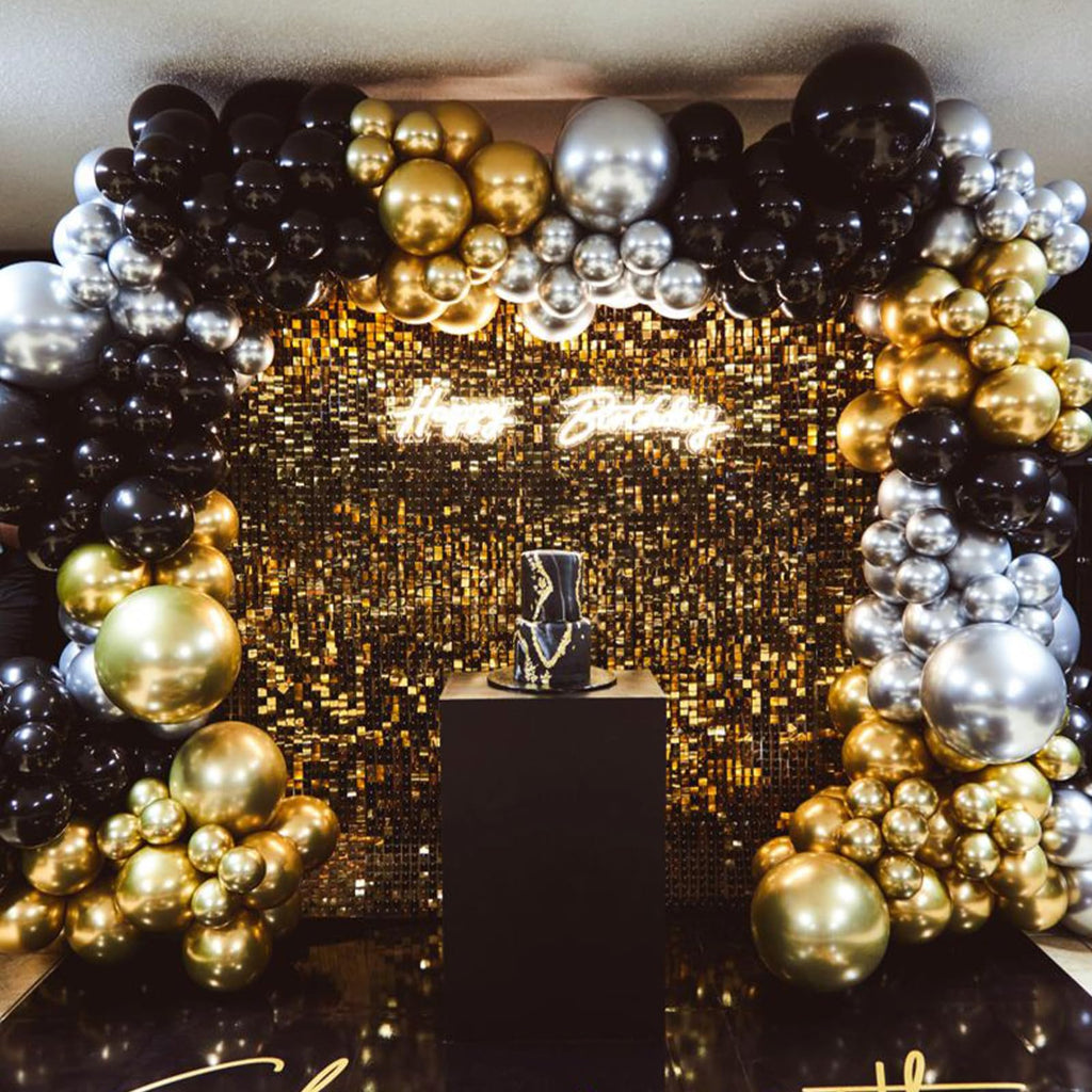 • 12 INCH 100 PCS BLACK AND GOLD BALLOONS: Package comes with 12 inch black balloons (50 pcs), gold metallic balloons (40 pcs), gold confetti balloons (5 pcs), balloon ribbon (1 roll), manual included