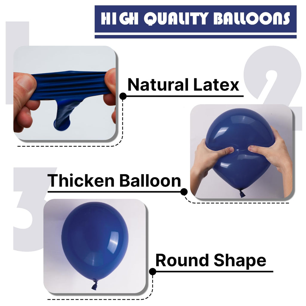 - MULTIPLE APPLICATIONS: Along with the dark blue balloons, we offer over 170 colors for you to choose. These balloons are perfect for graduations, New Year, Weddings, Father's Day, birthdays, sports theme, baby showers and navy blue party decorations
