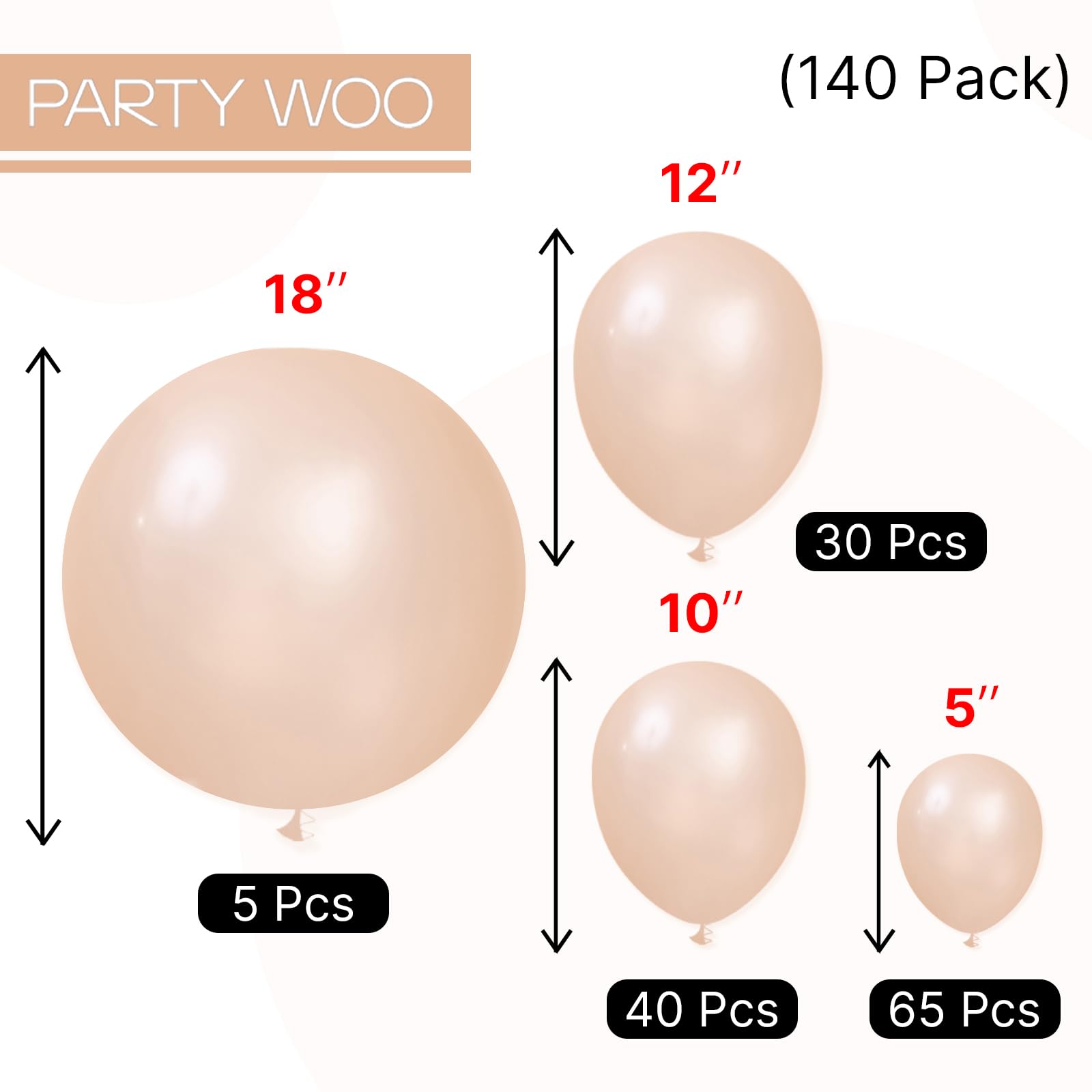 - Package includes: 18 inch peach balloons (5pcs), 12 inch peach balloons (30pcs), 10 inch peach balloons (40pcs), 5 inch peach balloons (65pcs), in a solid consistent color. Pay attentions that the 5 inch balloons could NOT float when inflated with HELIUM.