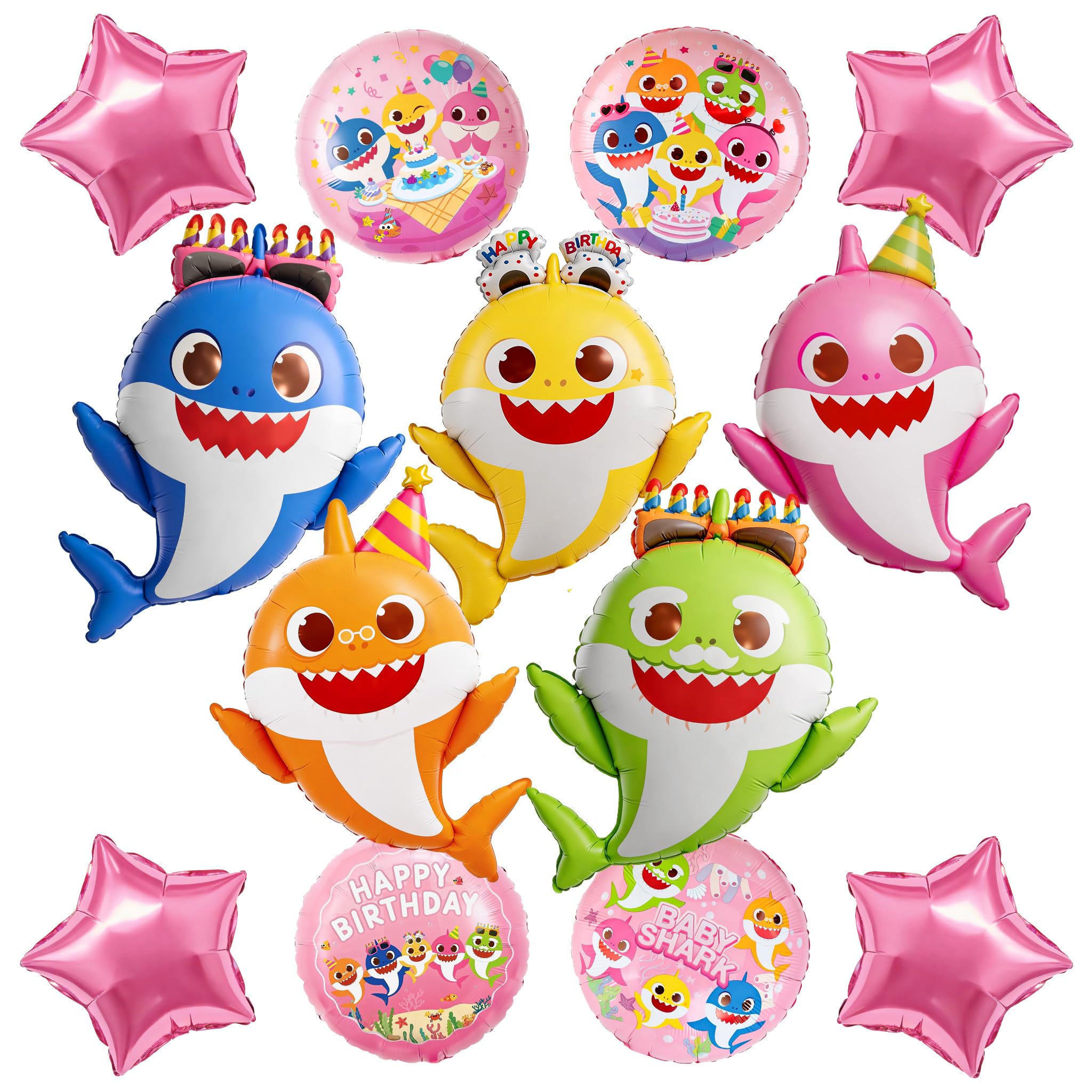 PartyWoo Baby Shark Family Foil Balloons 13pcs Baby Shark Family Pink Round Star Mylar Helium Balloons for Boys and Girls Birthday Decorations Under the Sea Ocean Kids Birthday Party Decorations