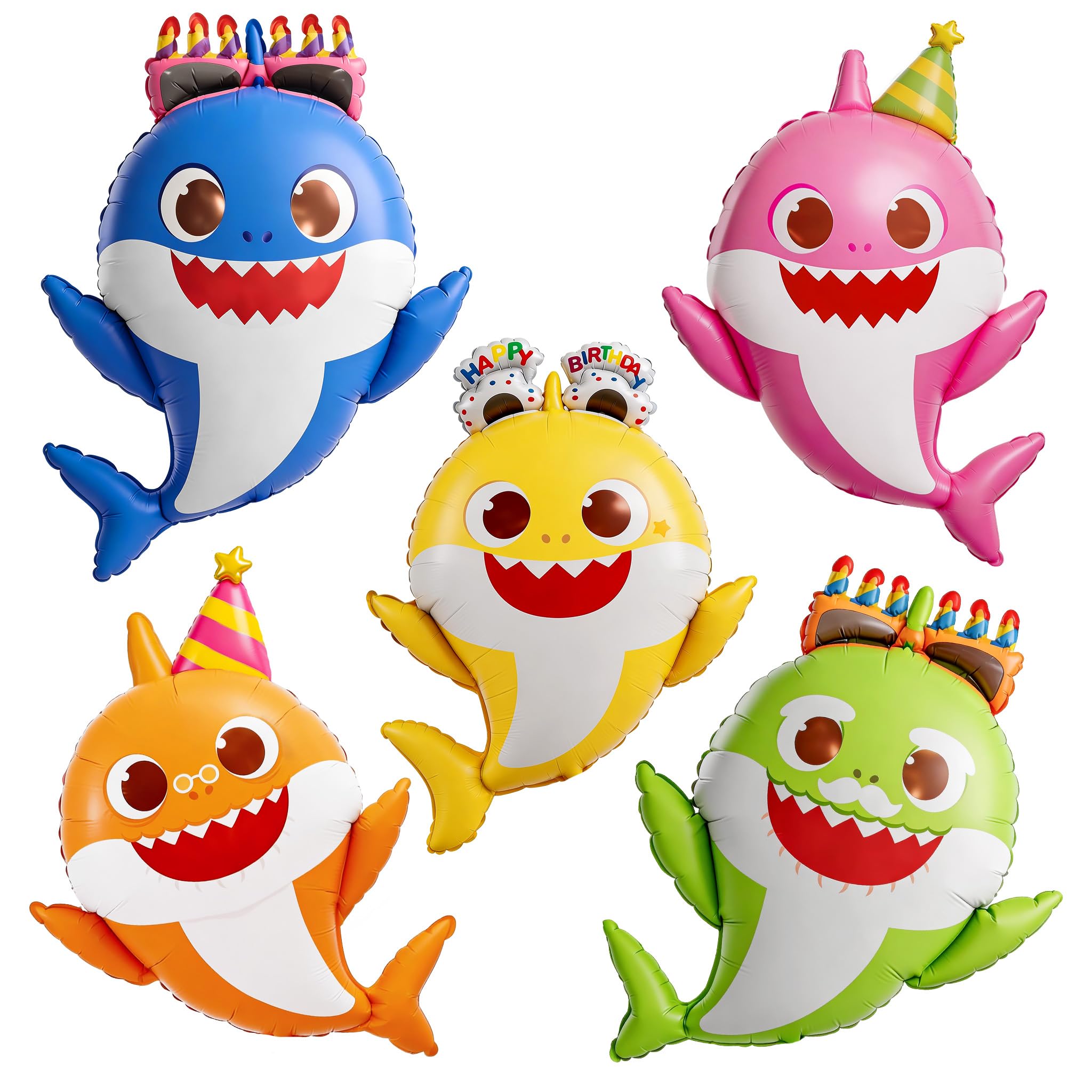 - Package includes: A total of 5 pcs baby shark family balloons, in a solid consistent color that brings vibrant energy, can widely used in birthday decorations and adding a vibrant touch to make your party bright.