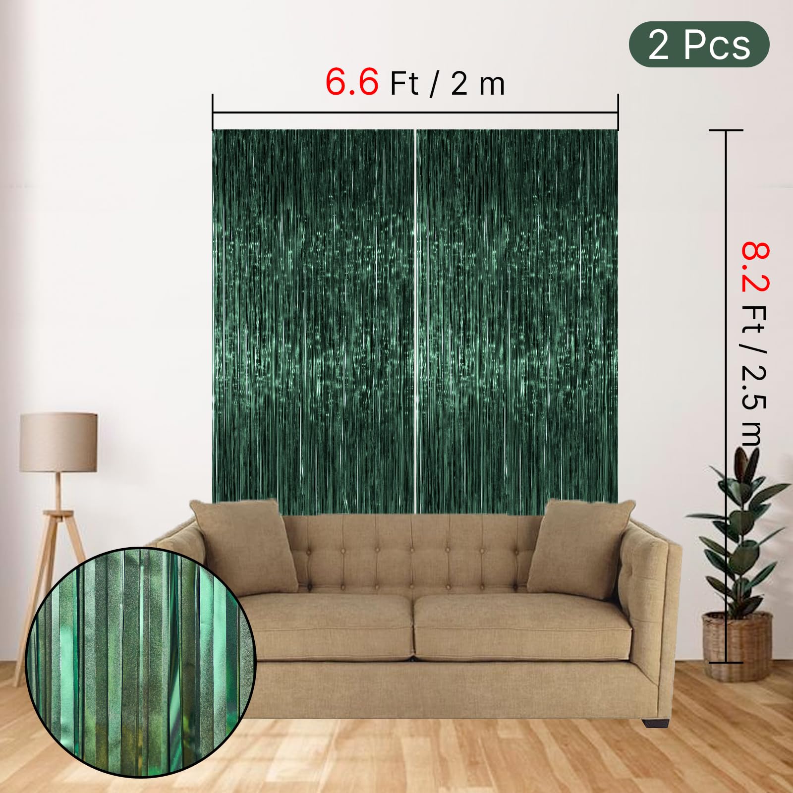 - 2-Pack Green Backdrop[8.2x3.3 ft,total 27 sq ft]:We have got you covered with this extra large green foil fringe streamers curtain. This will be perfect green tinsel backdrop Streamers for birthday baby shower or football party decorations.