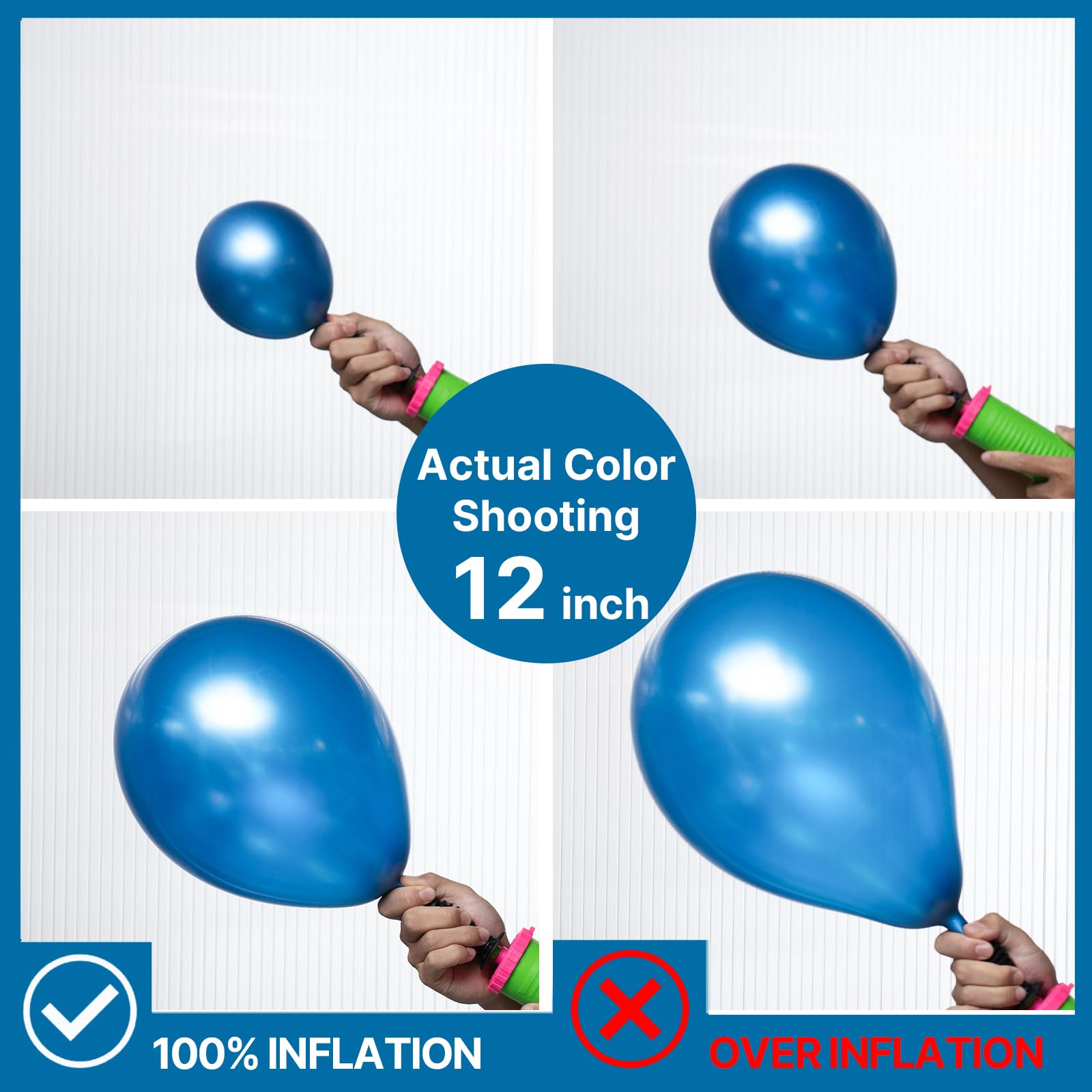 • Attention & Warning: Please DO NOT overfill the metallic blue balloons and also avoid sunburn, overheat, pointed object and excessive friction. Control the amount of air inflated into each balloon to achieve ideal balloon size, enjoy your birthday party.