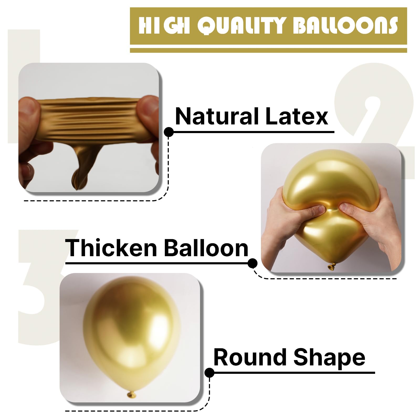 - Thick Durable Latex: These chrome gold balloons are made with high quality material, each balloon stays full longer perfect for arches garlands centerpieces. Ensuring your graduation, birthday decorations stays perfect from setup to celebration end.