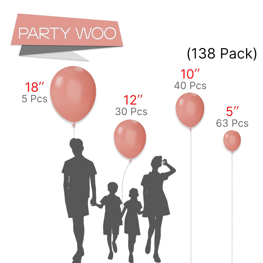 PartyWoo Dusty Pink Balloons 138 pcs Different Sizes of 18 12 10 5 Inch Blush Pink Dusty Rose Balloon Arch Kit Garland for Baby Shower Boho Theme Princess Birthday Party Decorations Pink-F01