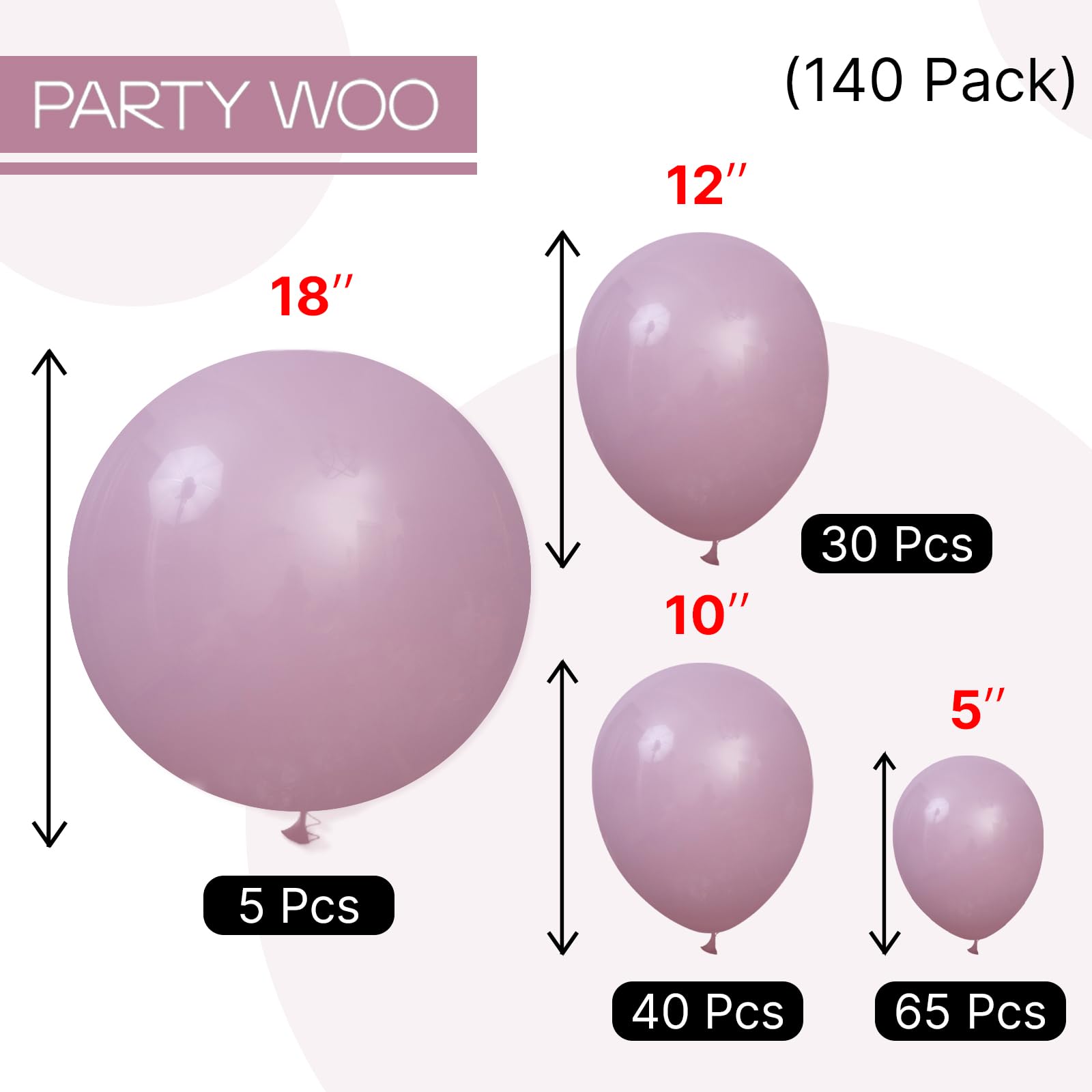 - Package includes: 18 inch dusty purple balloons (5 pcs), 12 inch dusty purple balloons (30 pcs), 10 inch dusty purple balloons (40 pcs), 5 inch dusty purple balloons (65 pcs), pay attentions that 5 inch balloons could NOT float when inflated with HELIUM.