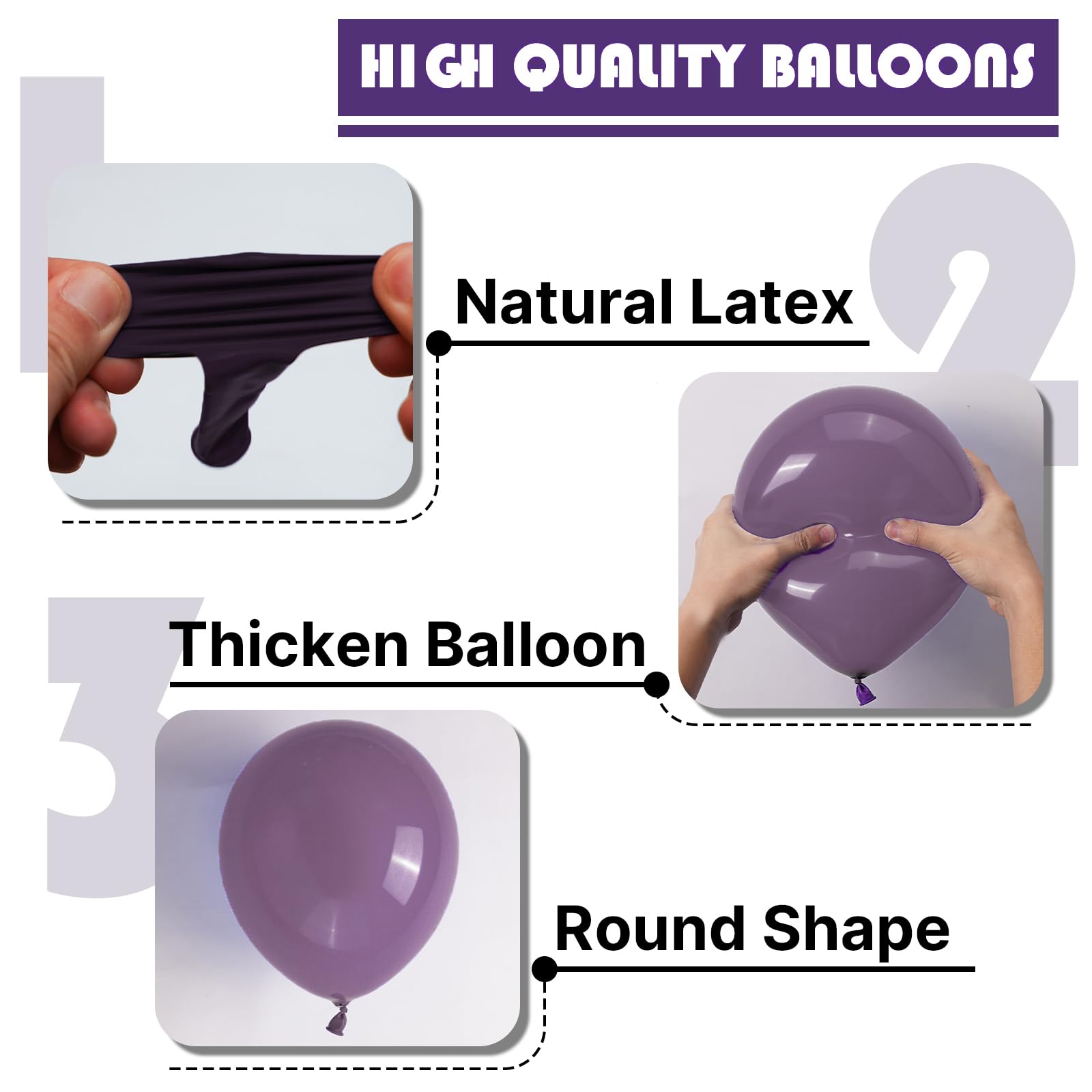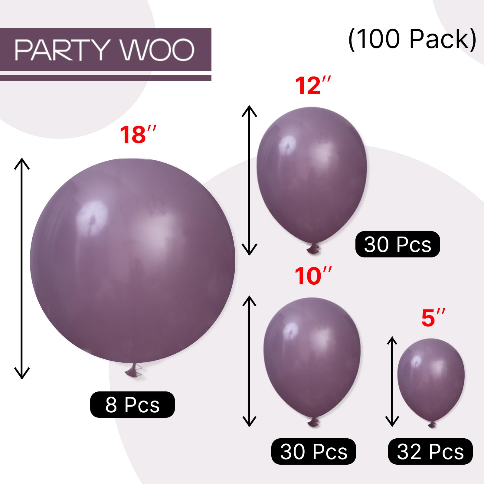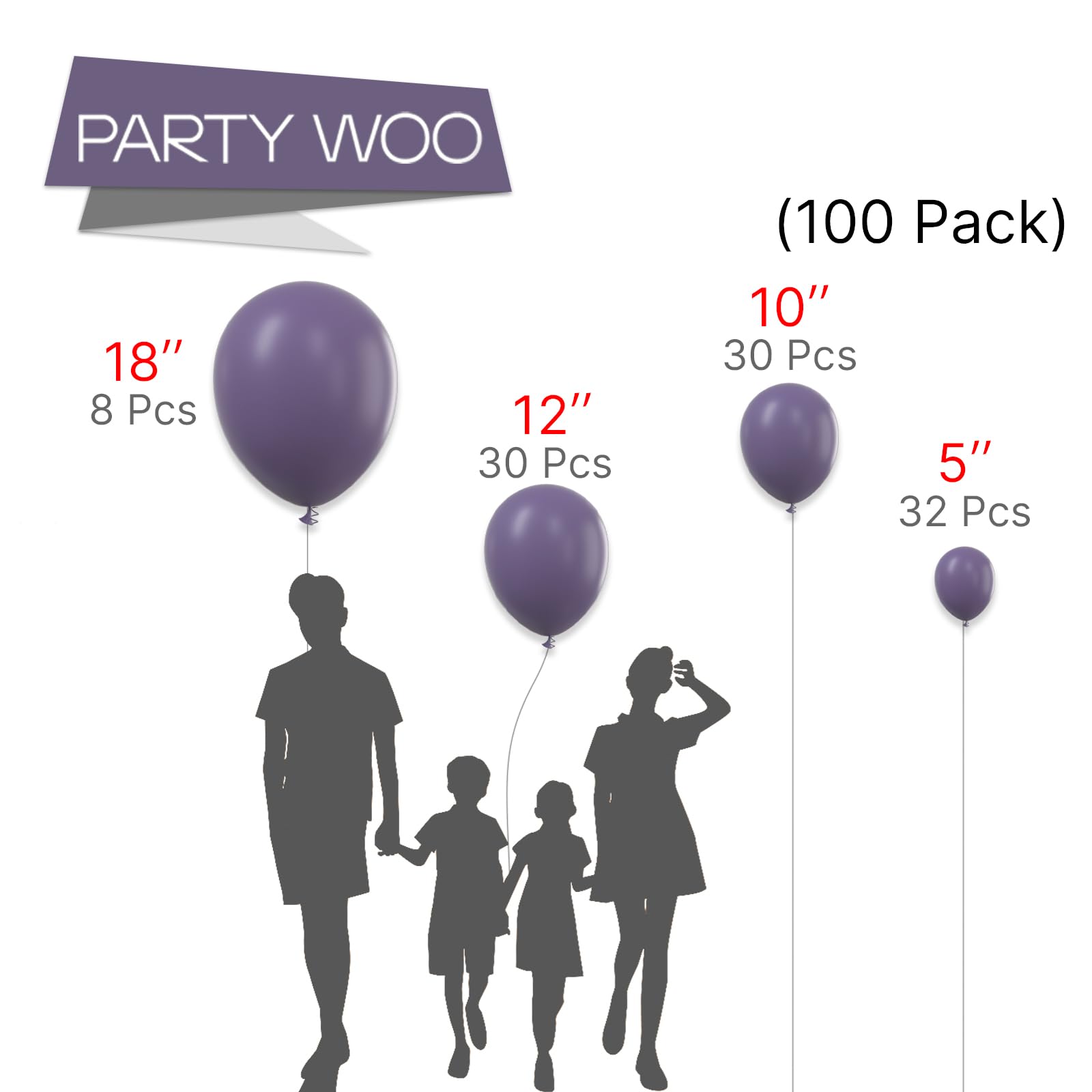 - 100 PCS LAVENDER PURPLE BALLOONS DIFFERENT SIZES: Package includes 18 inch balloons (8 pcs), 12 inch balloons (30 pcs), 10 inch balloons (30 pcs), 5 inch small balloons (32 pcs)