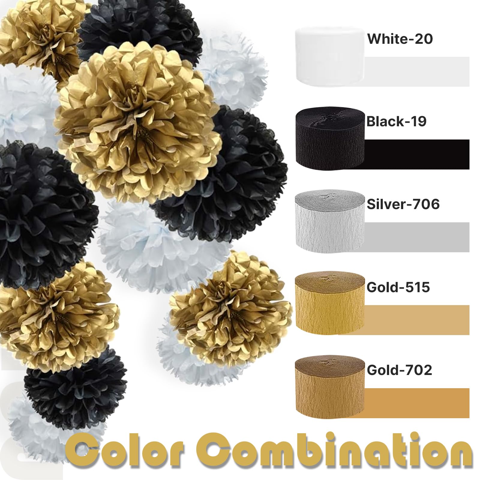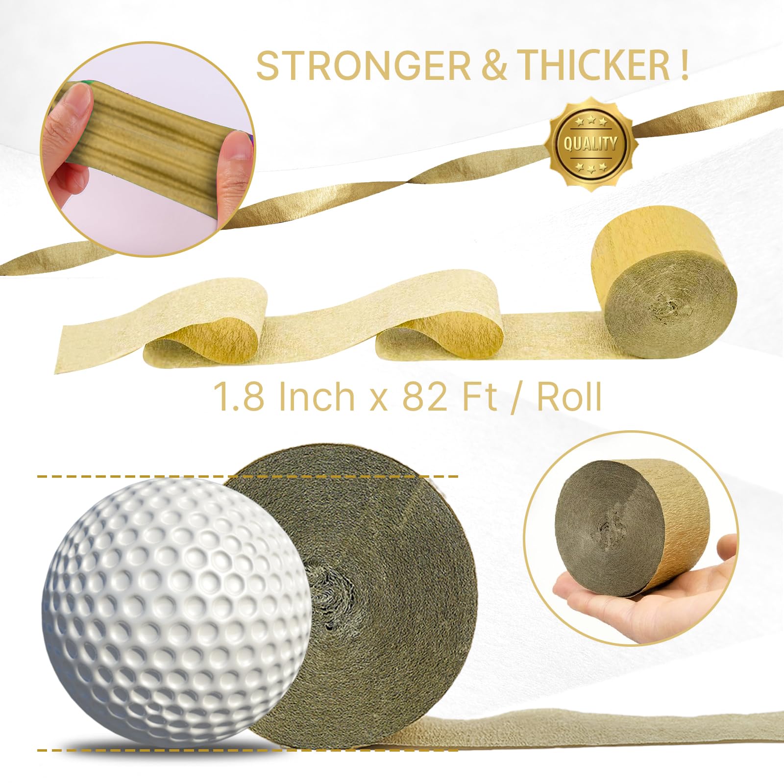 PartyWoo Crepe Paper Streamers 4 Rolls 328ft, Pack of Crepe Paper Pearl Gold Party Streamers, Crepe Paper for Birthday Decorations, Party Decorations, Baby Shower Decorations (1.8 in x 82 Ft/Roll)