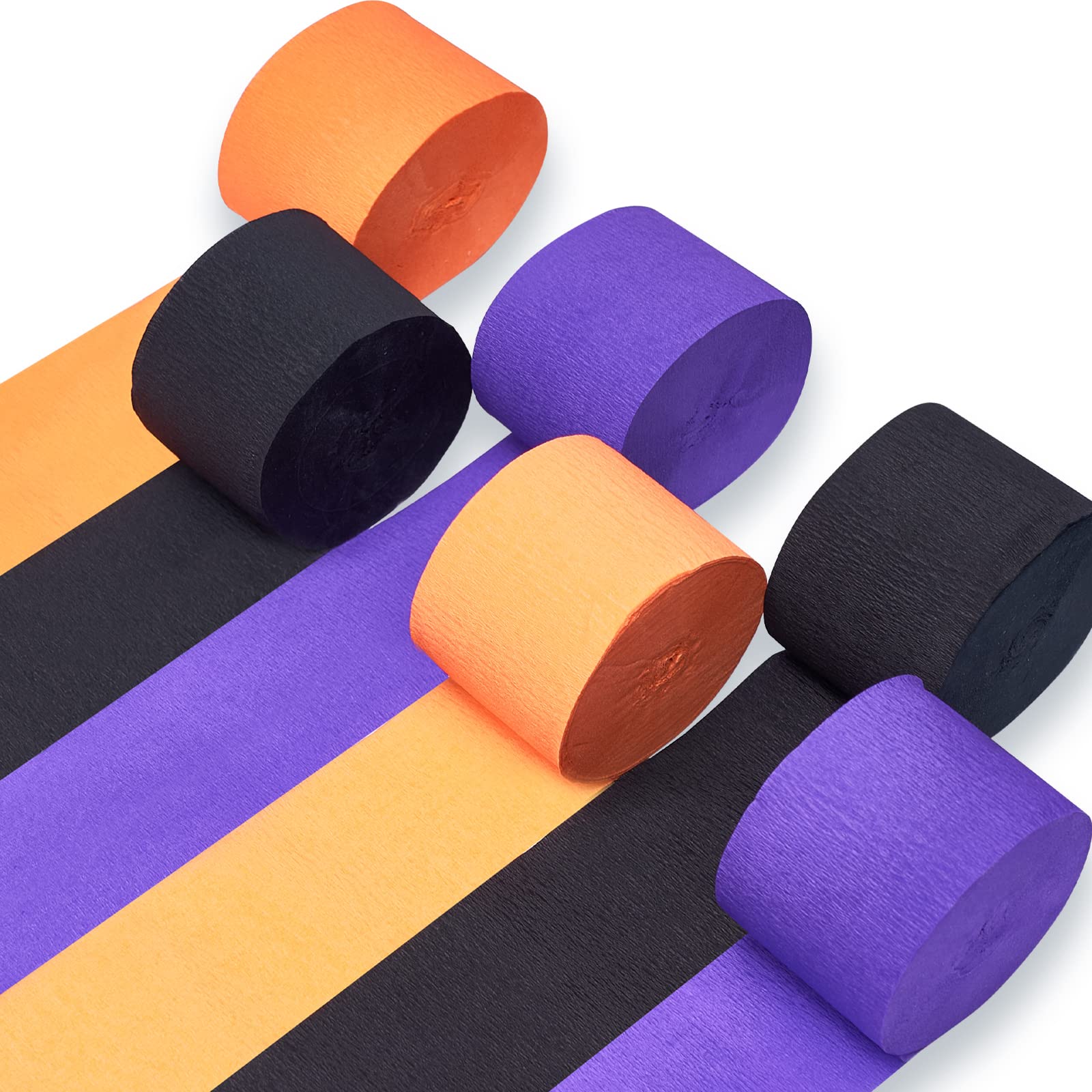 PartyWoo Crepe Paper Streamers 6 Rolls 492ft, Pack of Dark Purple, Orange and Black Party Streamers for Halloween Themed Birthday Decorations, Halloween Decorations (1.8 Inch x 82 Ft/Roll)