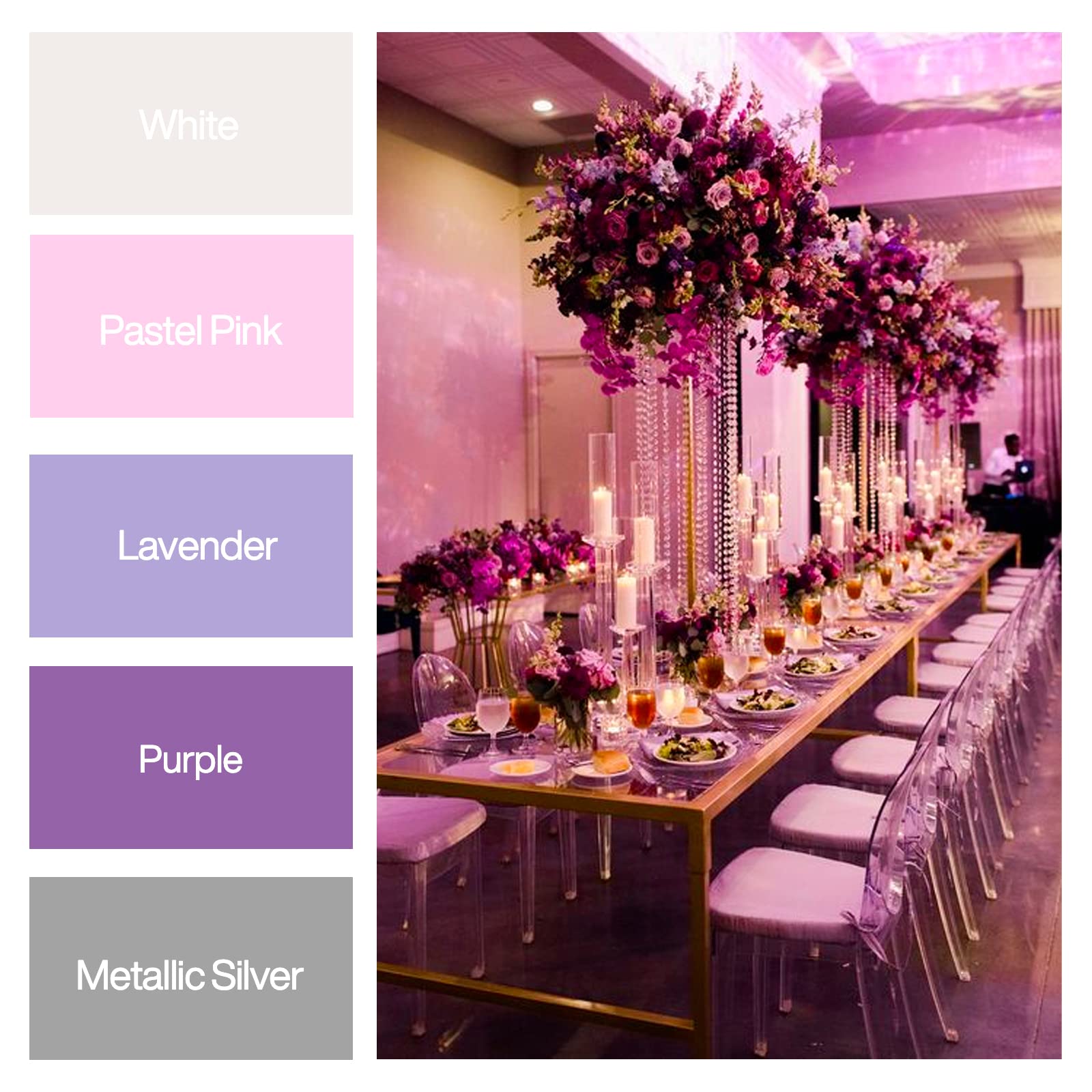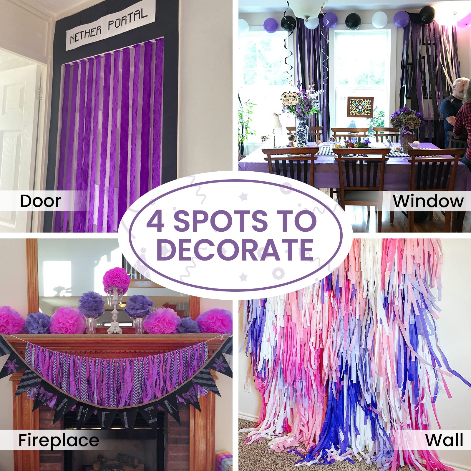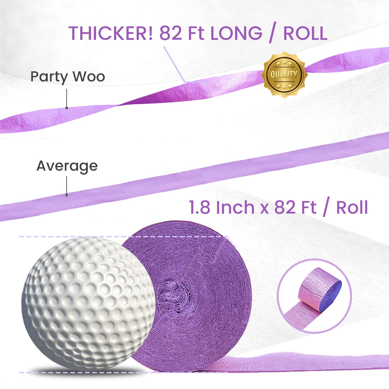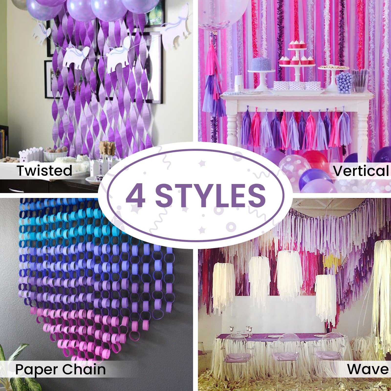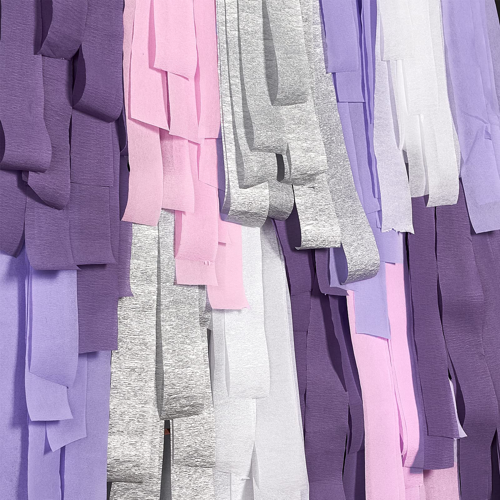 PartyWoo Crepe Paper Streamers 6 Rolls 492ft, Pack of Metallic Silver, Lavender, Purple, Pastel Pink, Pink, White Crepe Paper for Birthday Decorations, Baby Shower Decorations (1.8 Inch x 82 Ft/Roll)