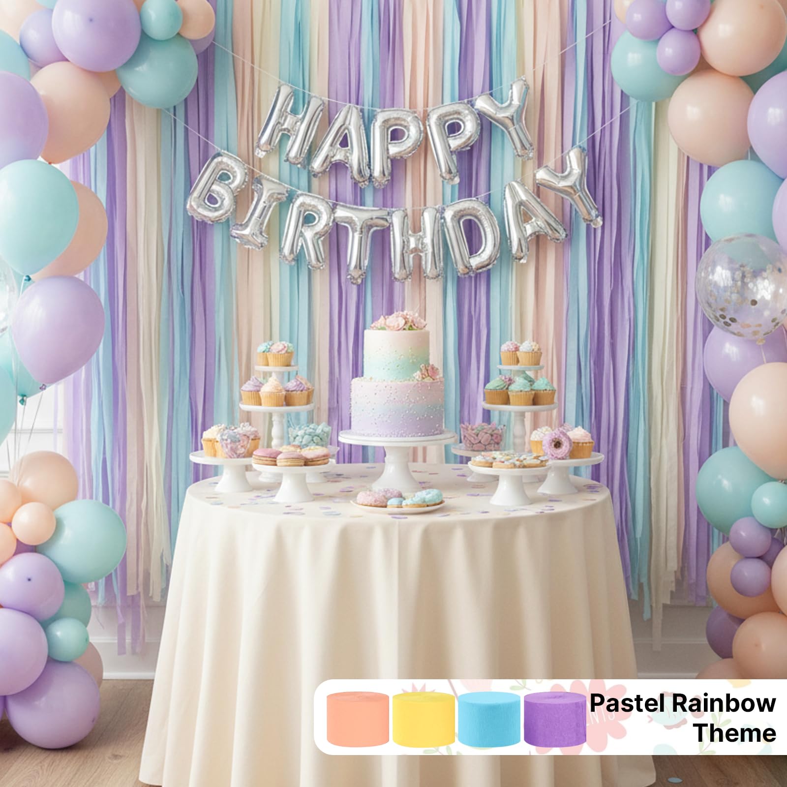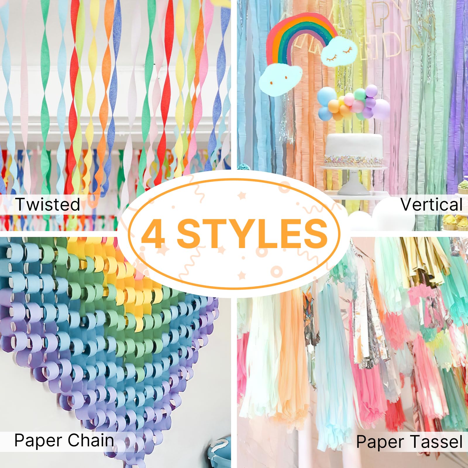 - MULTIPLE USAGES: The crepe paper could be used for party decorations, lovely room decorations and for art and DIY Projects. And our party streamers matches easily and beautifully with other party decorations, great for birthday decorations, mermaid party supplies, pastel party decorations, butterfly decorations party, unicorn theme party, ice cream birthday party, rainbow first birthday