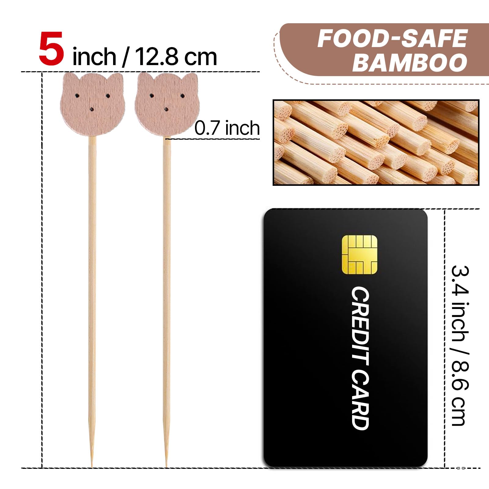 - Unique Design: Our bear face bamboo picks add style and interest to your food presentation. In contrast to straight toothpicks, it prevents food from falling out, making it easier for you to hold. It can be used in graduation and birthday party.