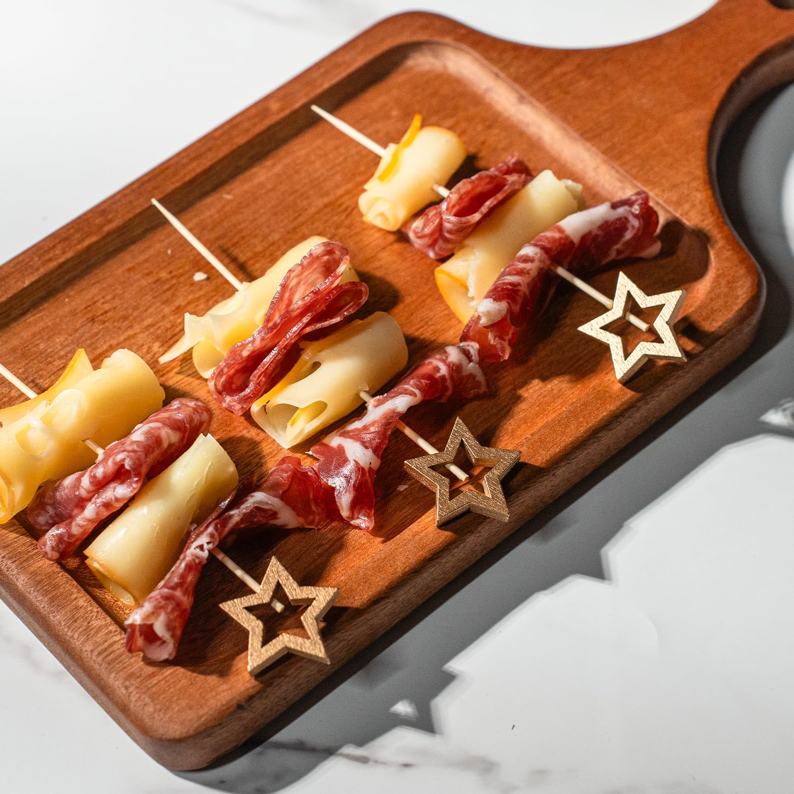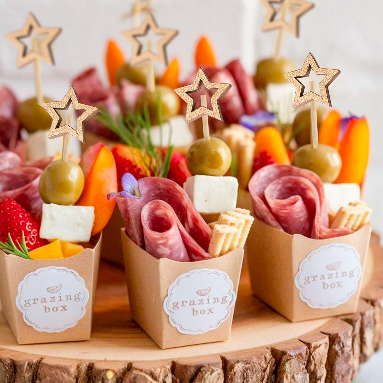 - Add Charms For Your Food: Our gold star cocktail sticks are easy to decorate and use. Fancy food picks are a great decoration for charcuterie boards, appetizers, fruit, olives, desserts, sandwiches, cheeses, salads, buffets, drinks and vegetables.