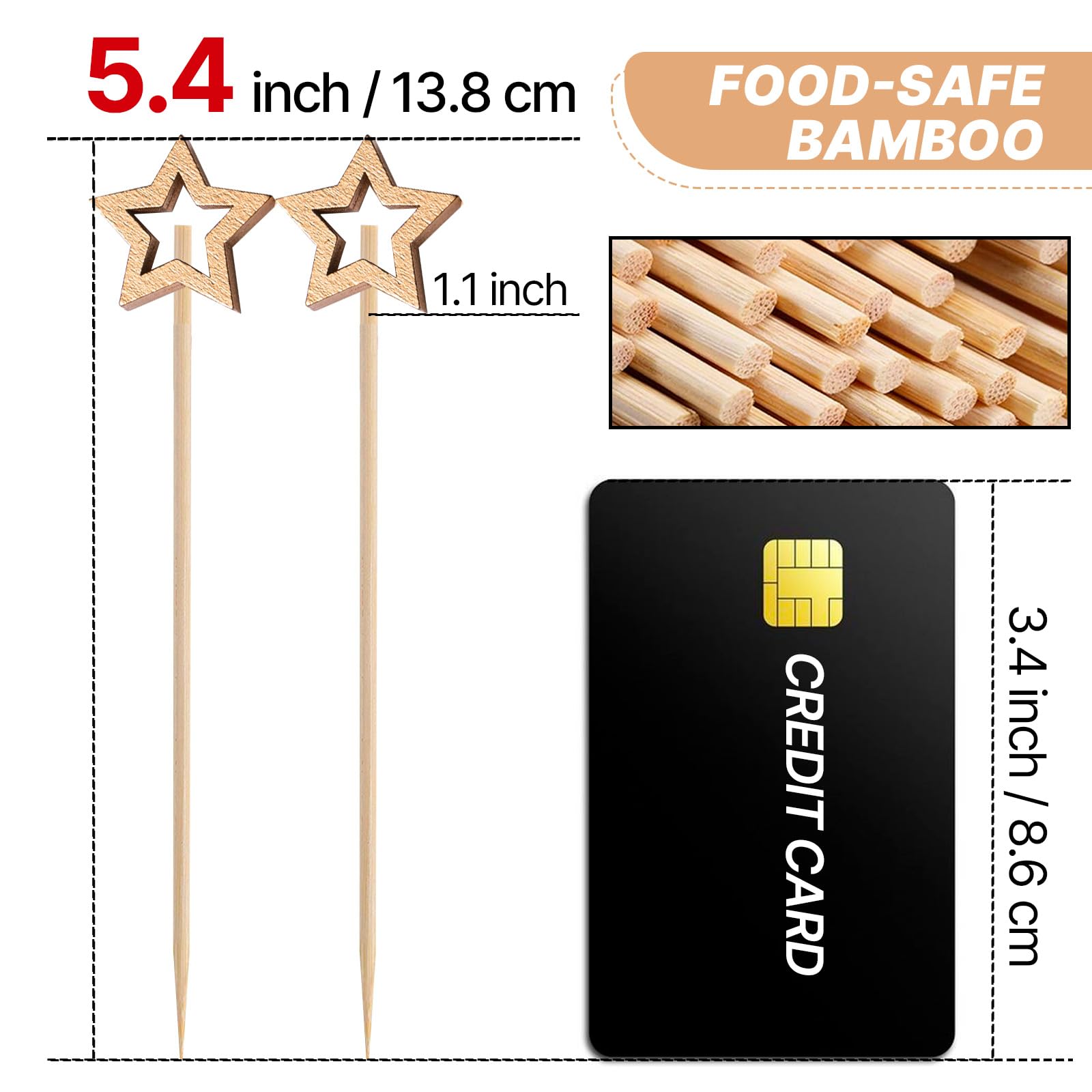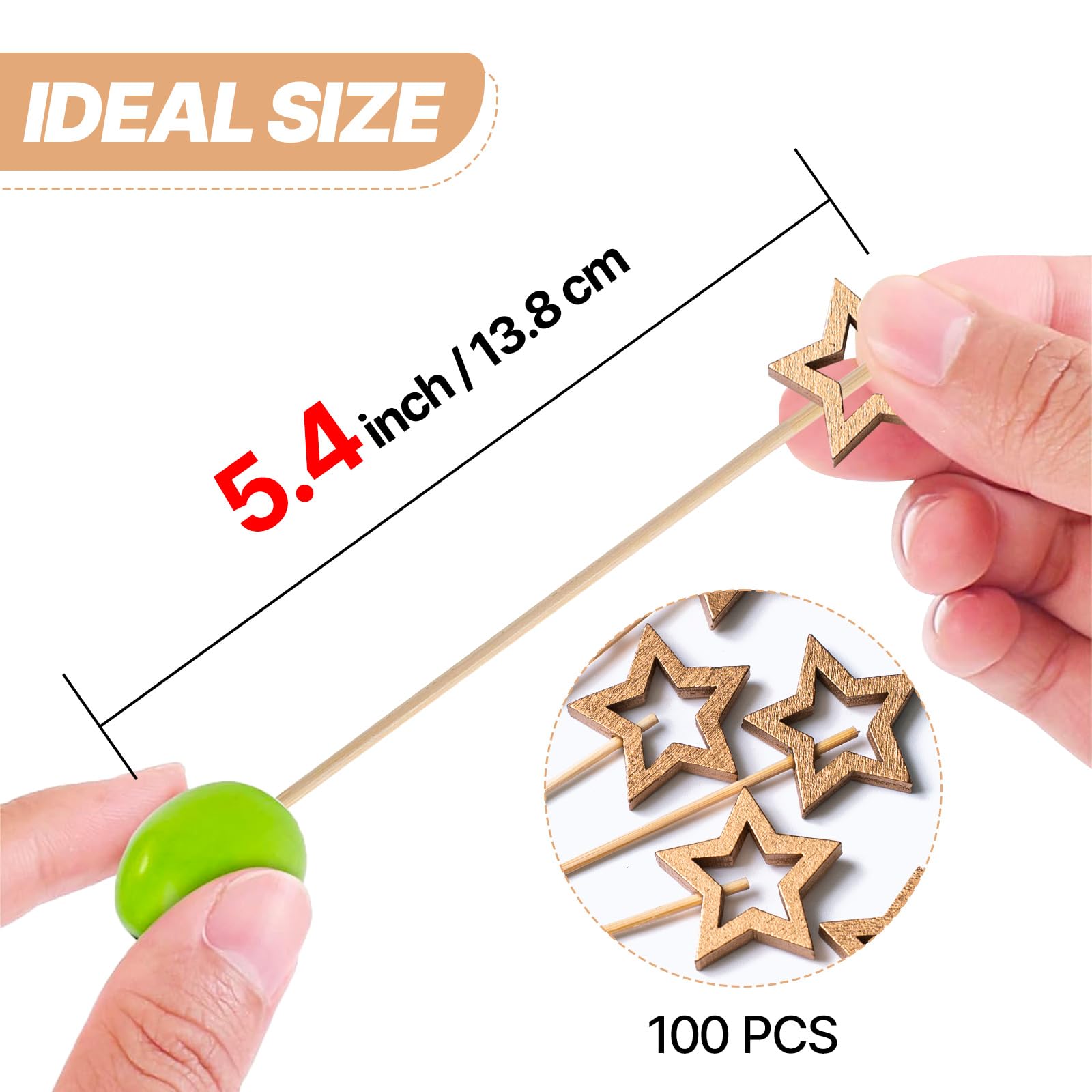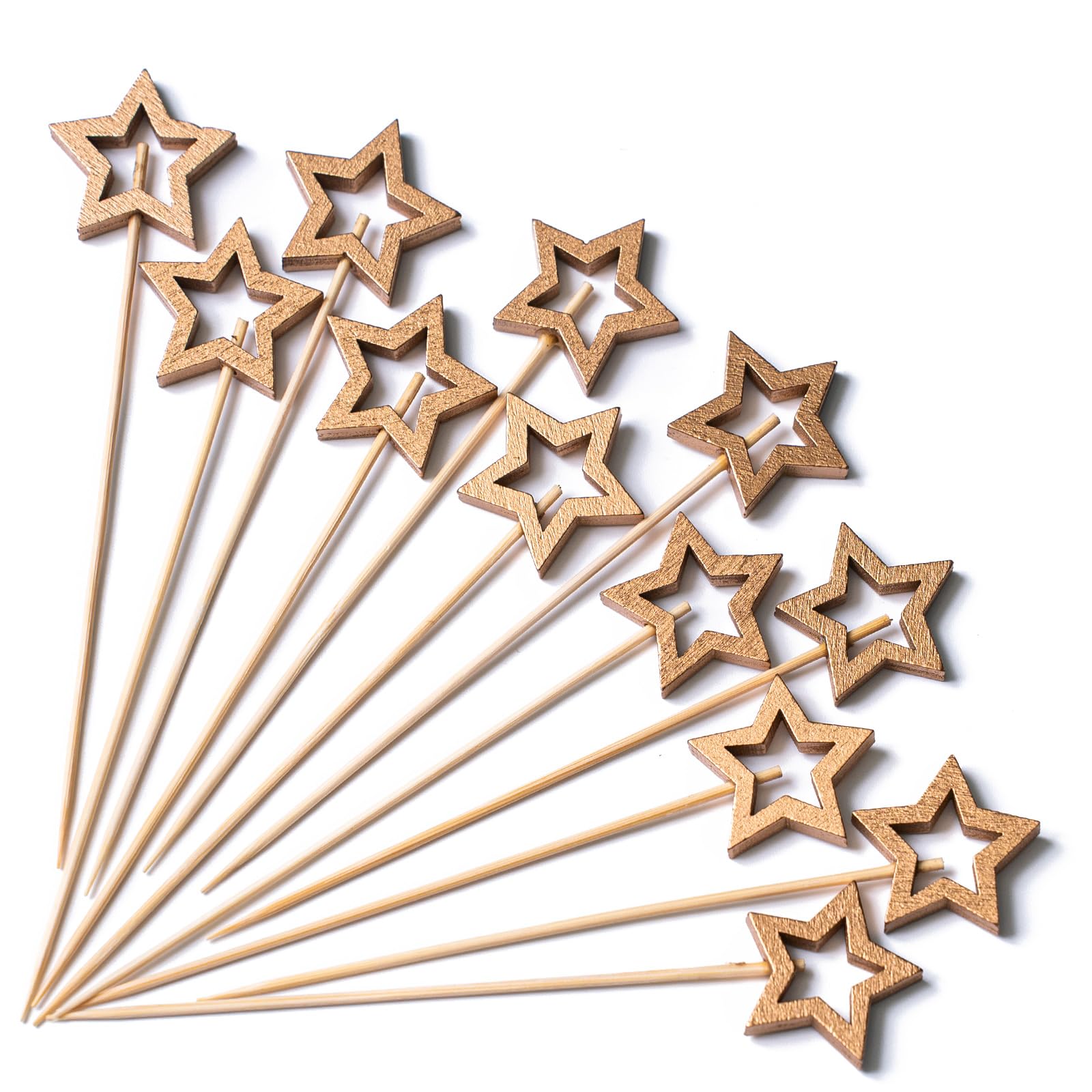 - Unique Design: Our gold star bamboo picks with looped knot top add style and interest to your food presentation. In contrast to straight toothpicks, it prevents food from falling out, making it easier for you to hold. It can be used in your party.