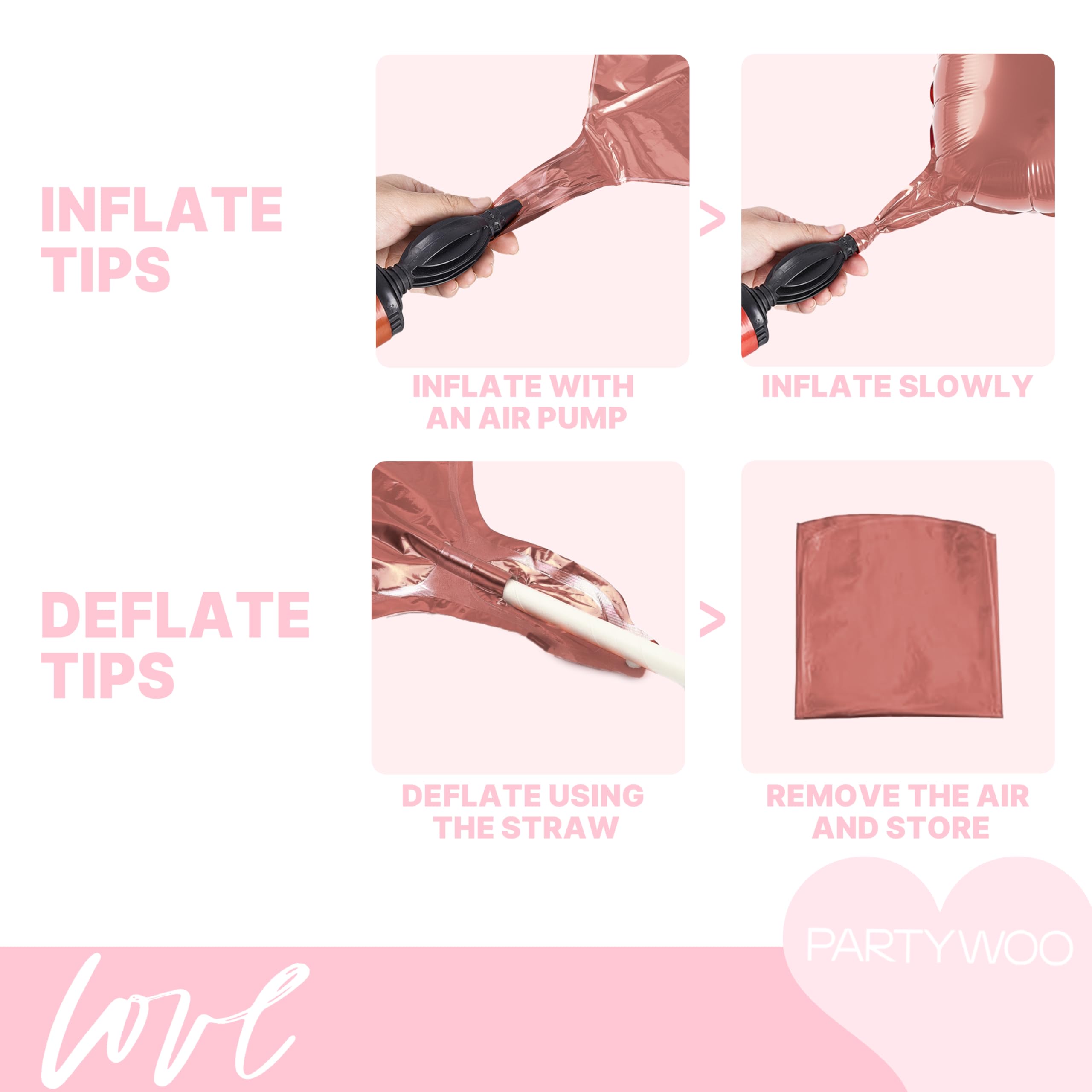 - Simple to Use and Set Up: Inflating these pink and white heart foil balloons is a breeze—inflate great with standard pumps, and deflation is just as simple for reuse. They save time on Valentine's Day, proposal decorations and engagement decorations