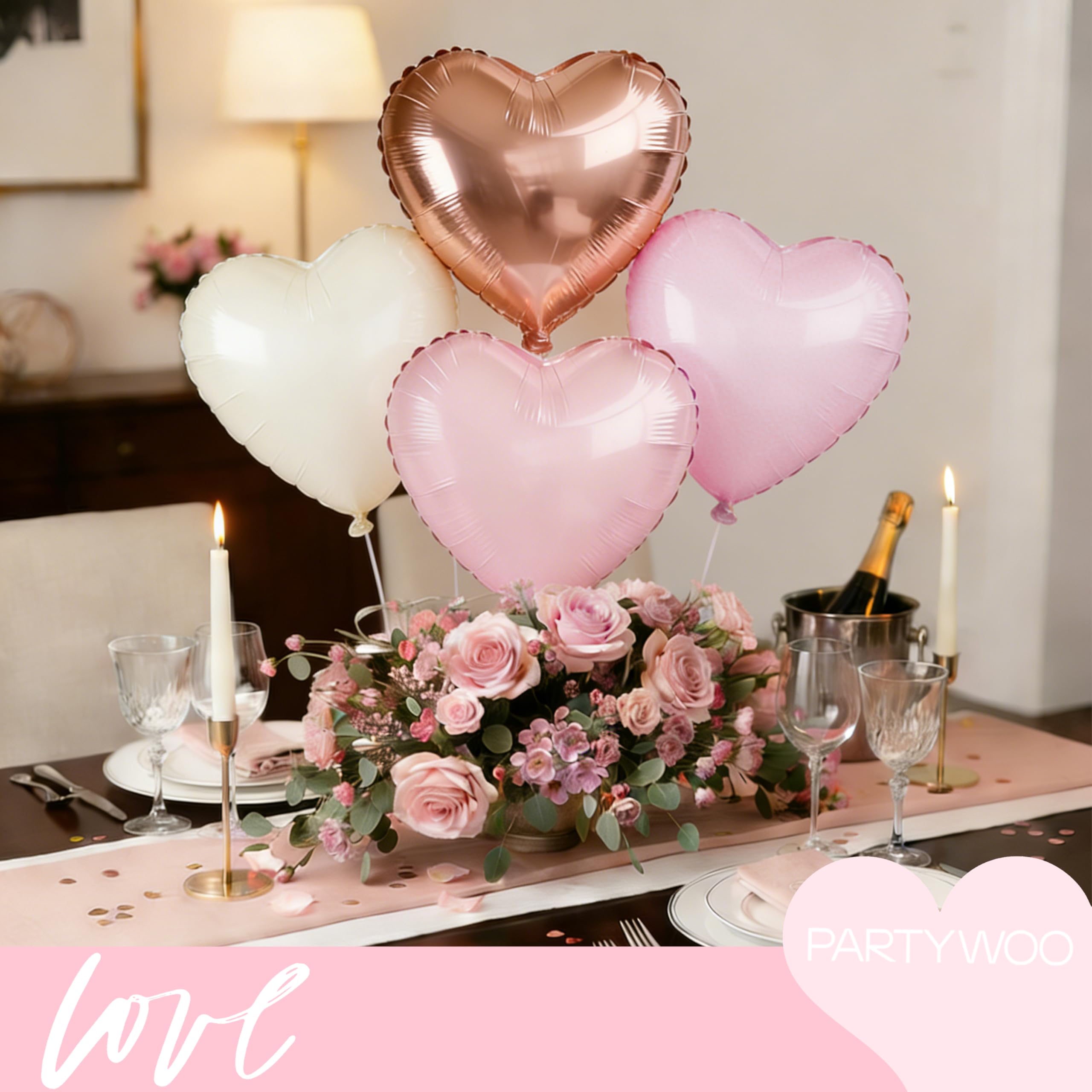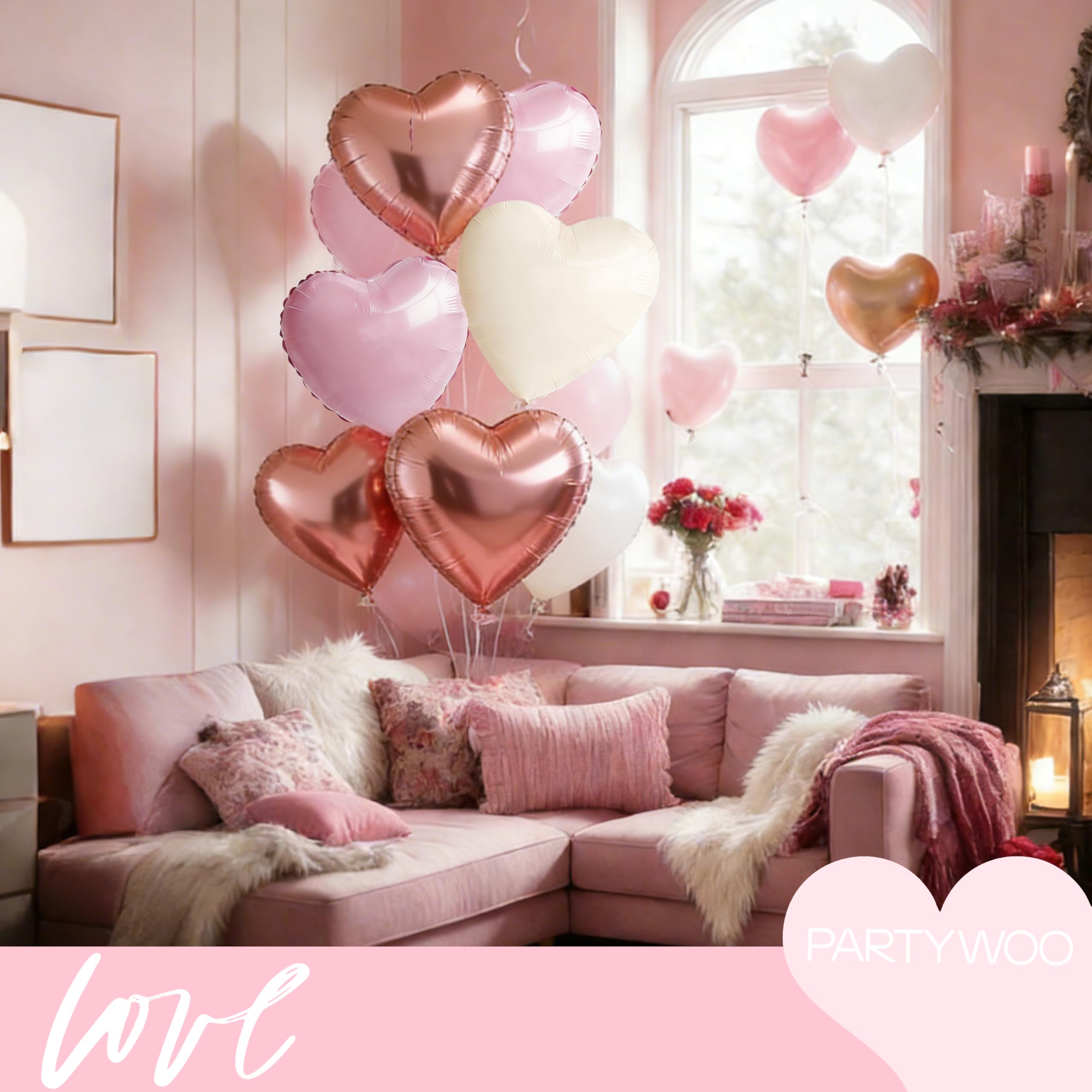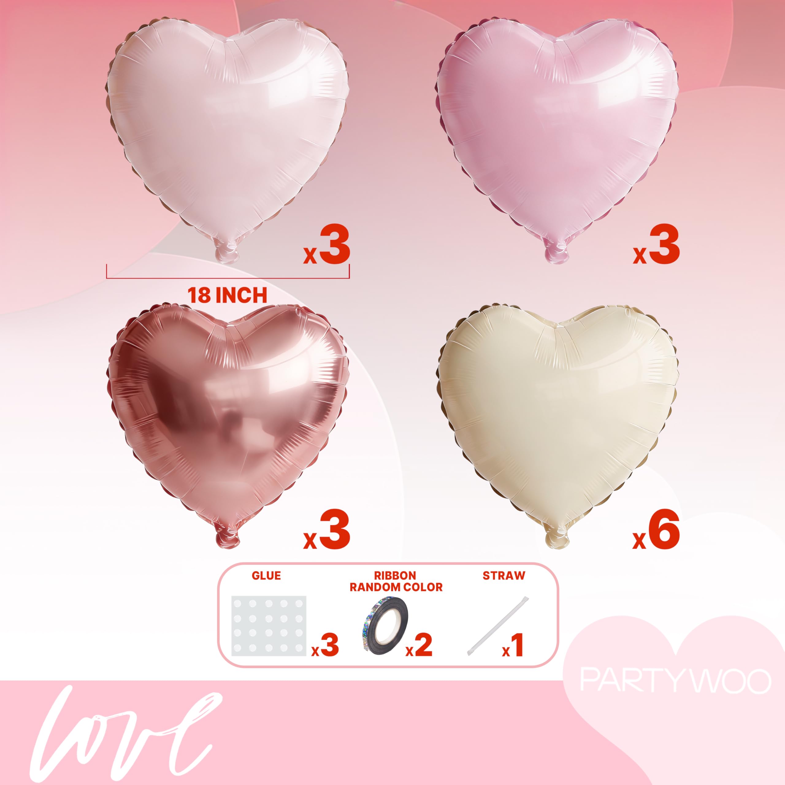 - Package Include: You will receive 18 inch baby pink heart balloons (4pcs), cream white heart balloons (4pcs), pink heart balloons (3pcs), rose gold heart balloons (4pcs). These heart balloons can widely used in Valentine's Day and engagement party.