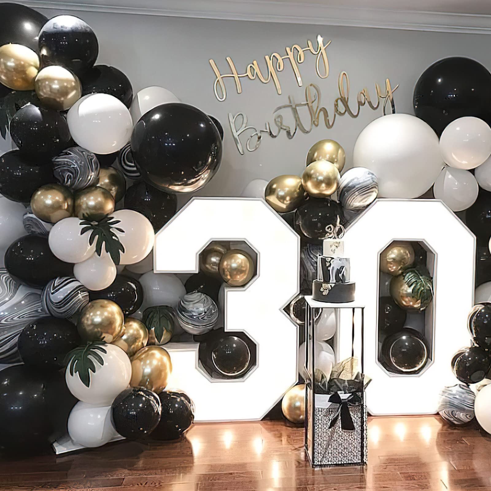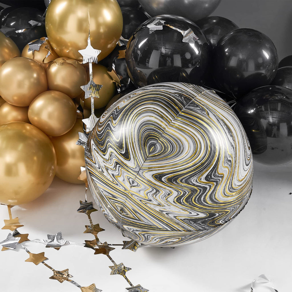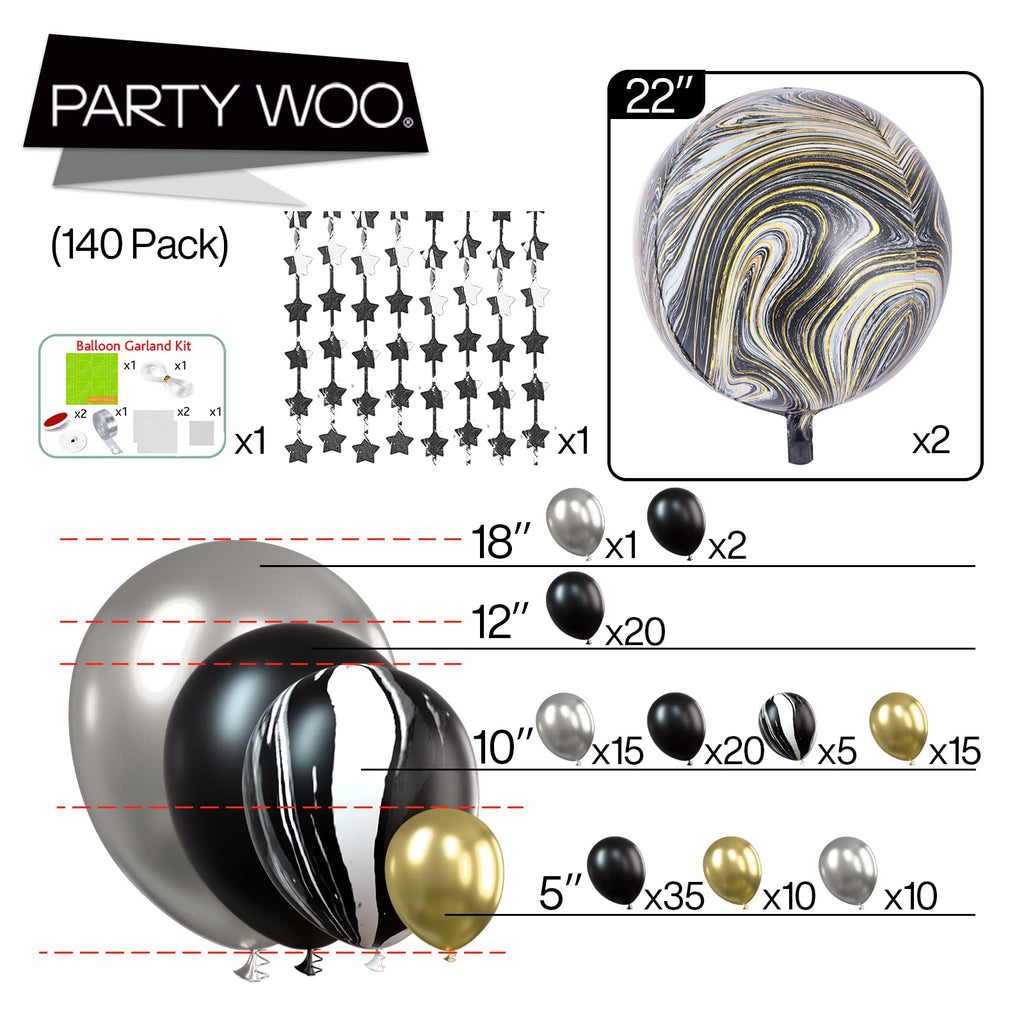 PartyWoo 140 pcs Black and Gold Balloon Arch Kit, Black and Gold Balloons Garland with 4D Marble Balloons, Chrome Metallic Silver Balloons, Star Garland for Birthday Decorations, Retirement Party