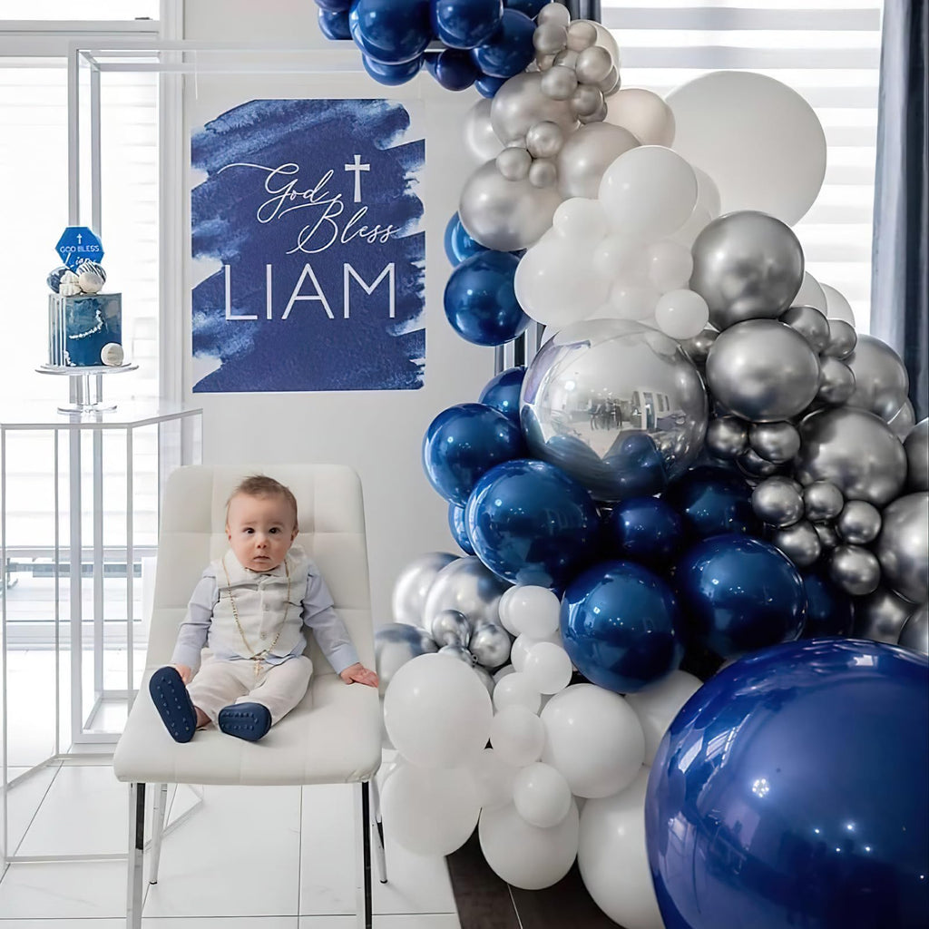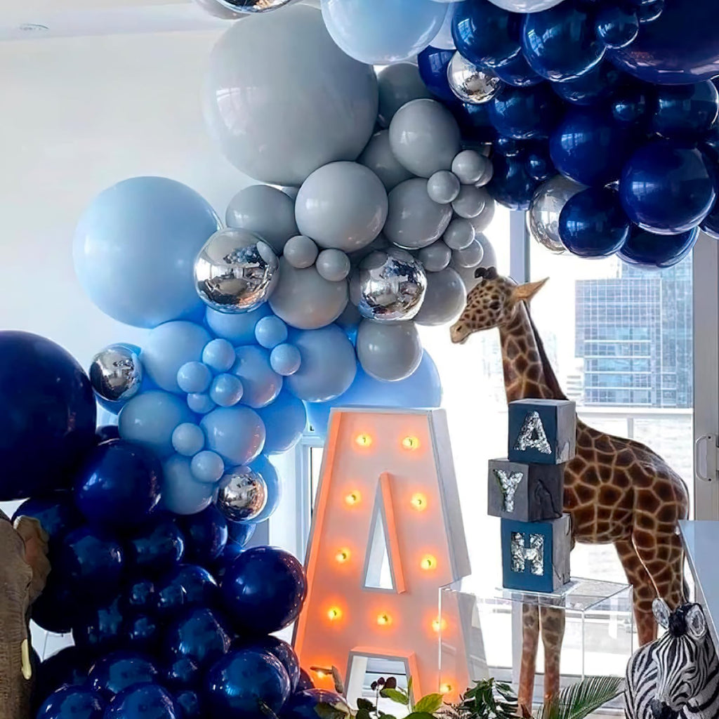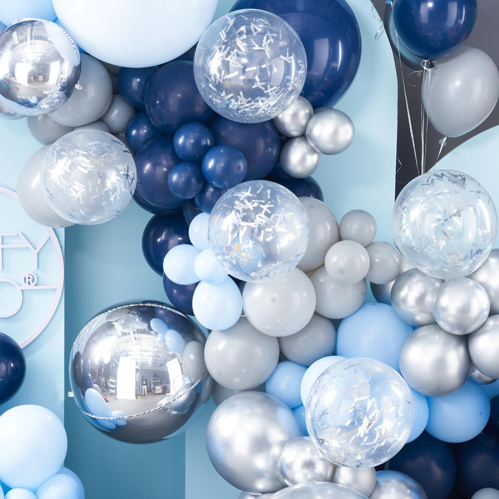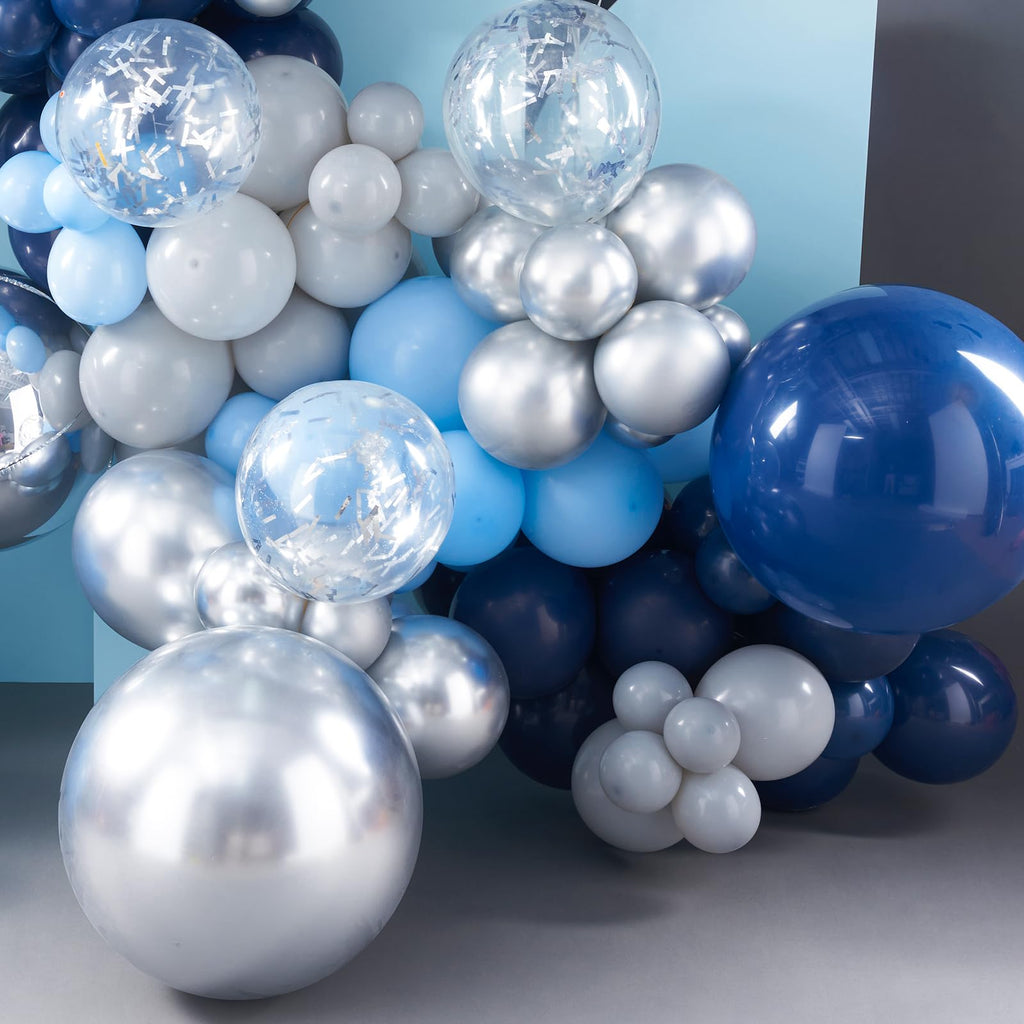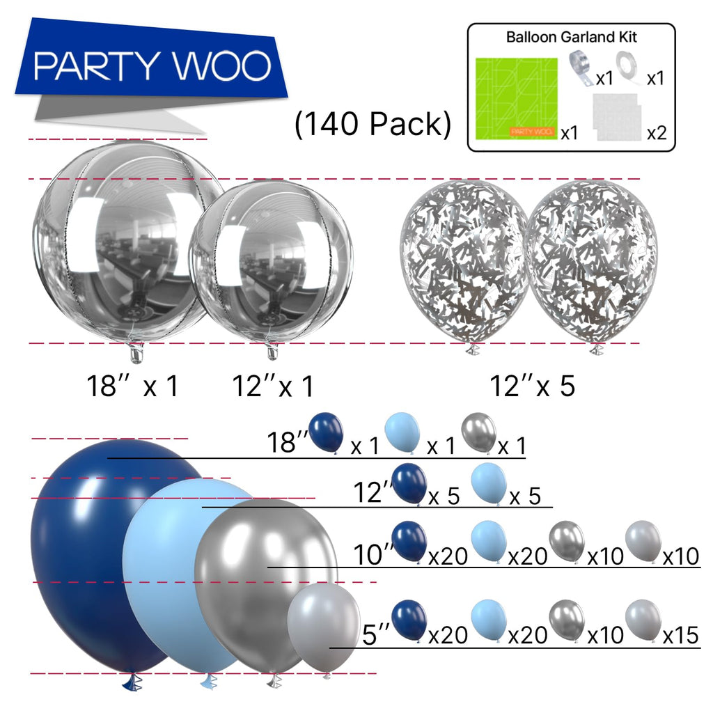 PartyWoo 140 pcs Blue Balloon Arch Kit Garland Navy and Light Baby Blue Silver Gray 4D Foil and Glitter Balloons for Baby Shower Gender Reveal Graduation Wedding Birthday Party Decorations
