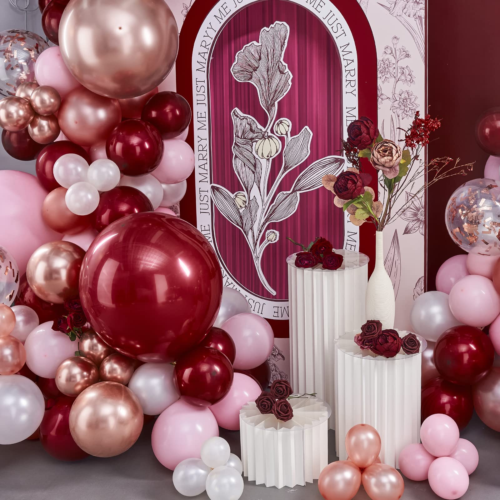 PartyWoo Burgundy Balloon Arch Kit Garland 142pcs Different Sizes of 18 12 10 5 Inch Rose Gold Light Pastel Baby Pink White Confetti Balloons for Baby Shower Birthday Wedding Party Decorations