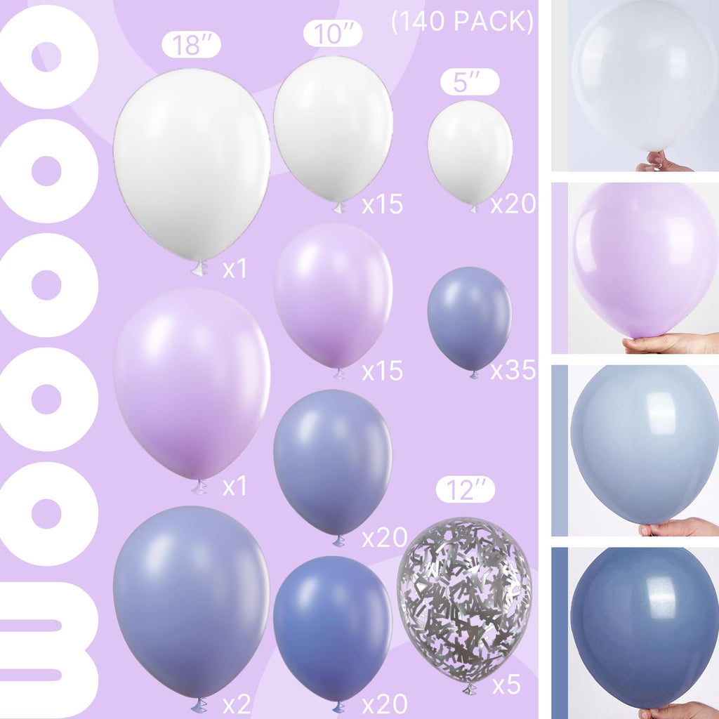 PartyWoo Purple Balloon Arch Kit Garland 140 pcs Shades of Purple Lavender Lilac Balloons Different Sizes of 18 12 10 5 Inch for Baby Shower Butterfly Wedding Birthday Fairy Party Decorations