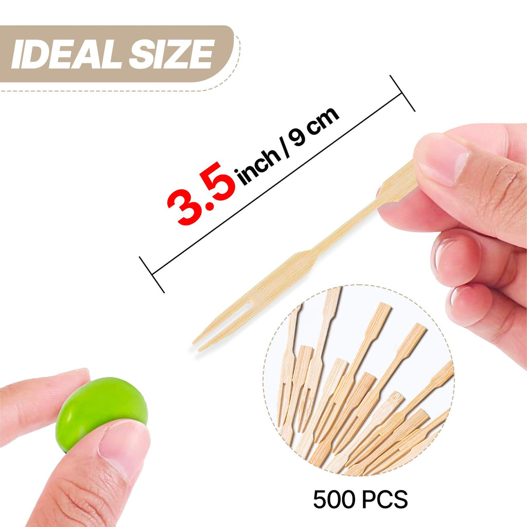 PartyWoo Bamboo Cocktail Forks 3.5 Inch 500pcs Fancy Mini Small Appetizer Forks Toothpicks for Food Drink Fruit Sandwich BBQ Wedding Cocktail Party Charcuterie Boards Accessories Party Supplies