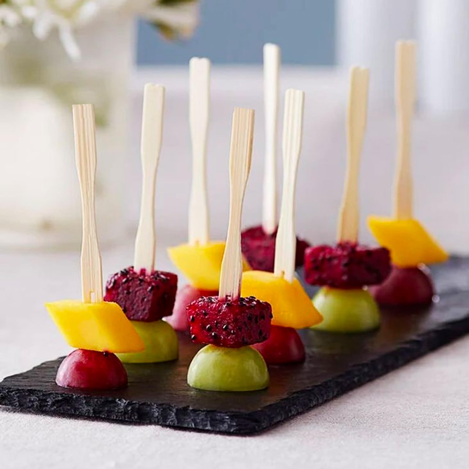 • Add Charms For Your Food: Our bamboo small forks are easy to decorate and use. Fancy food forks are a great decoration for charcuterie boards, appetizers, fruit, olives, desserts, sandwiches, cheeses, salads, buffets, drinks and vegetables.