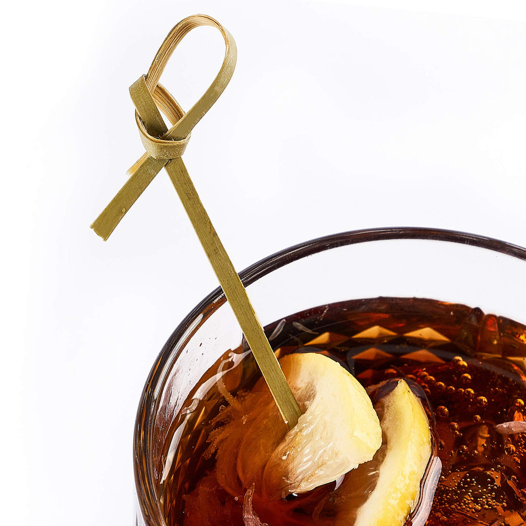 PartyWoo Bamboo Cocktail Picks, 300 Counts 4.1 inch Bamboo Skewers, Cocktail Toothpicks for Appetizers, Cocktail Skewers, Cocktail Sticks, Food Pick for Appetizers, Cocktail Party, BBQ (Knotted End)