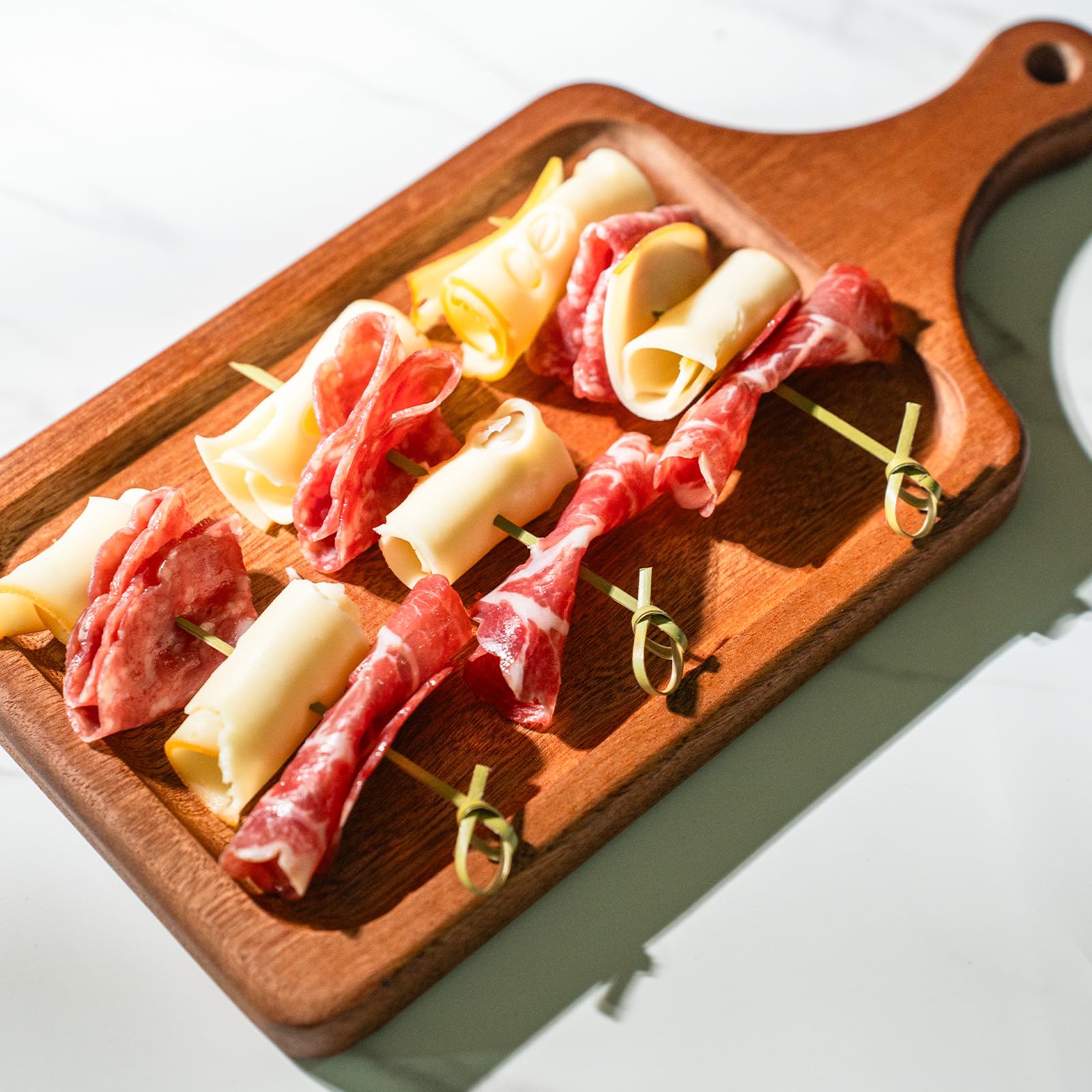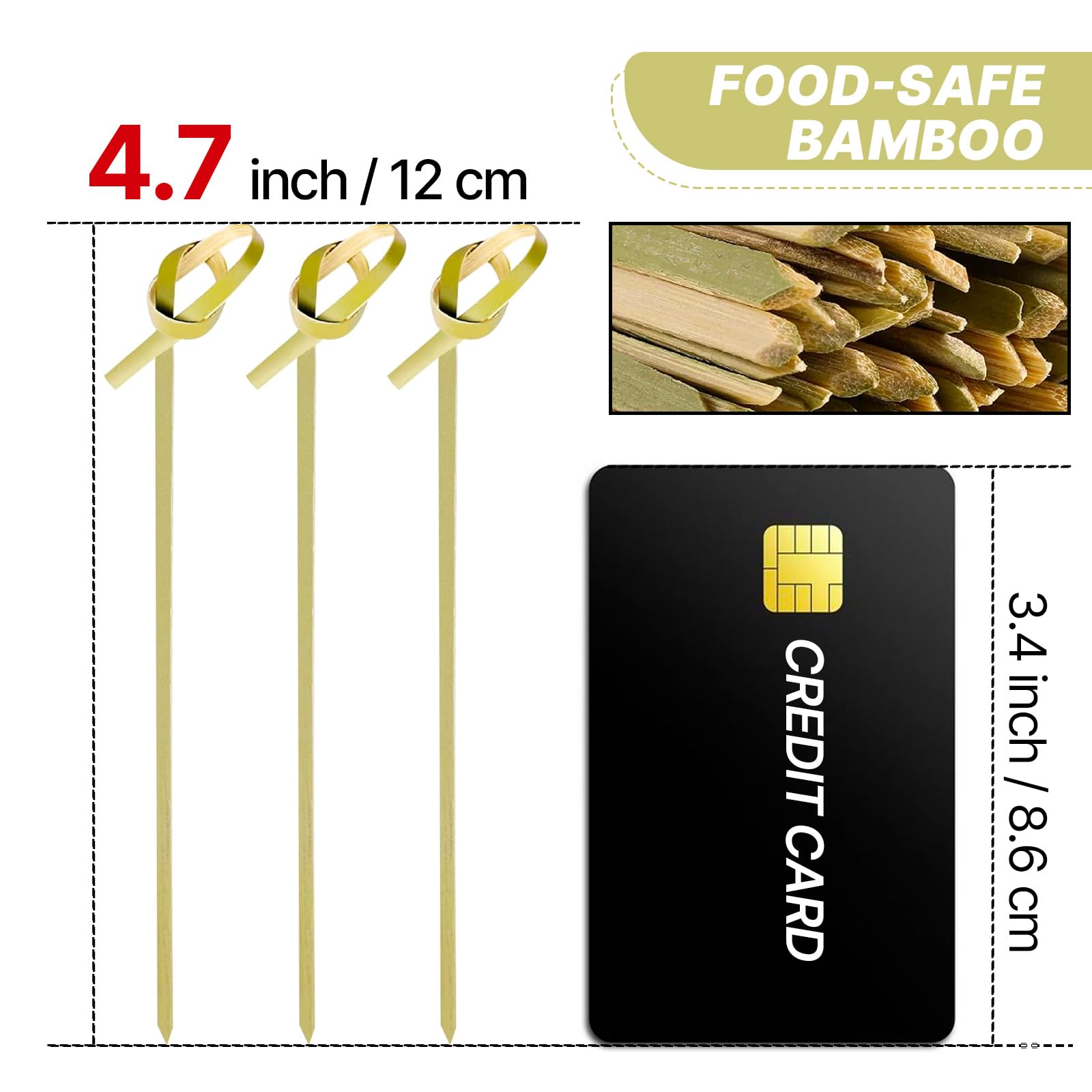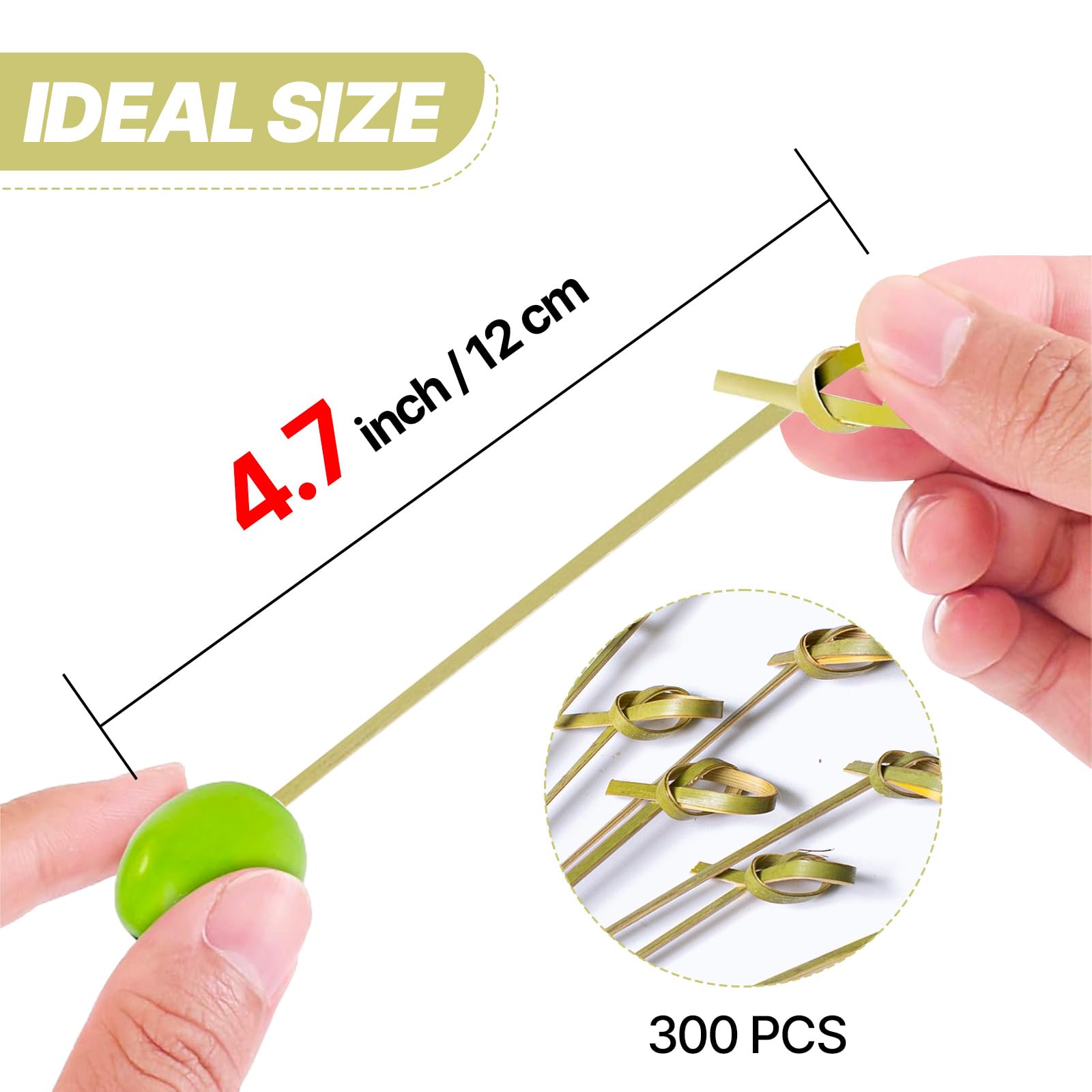 PartyWoo Bamboo Cocktail Picks, 300 Counts 4.1 inch Bamboo Skewers, Cocktail Toothpicks for Appetizers, Cocktail Skewers, Cocktail Sticks, Food Pick for Appetizers, Cocktail Party, BBQ (Knotted End)