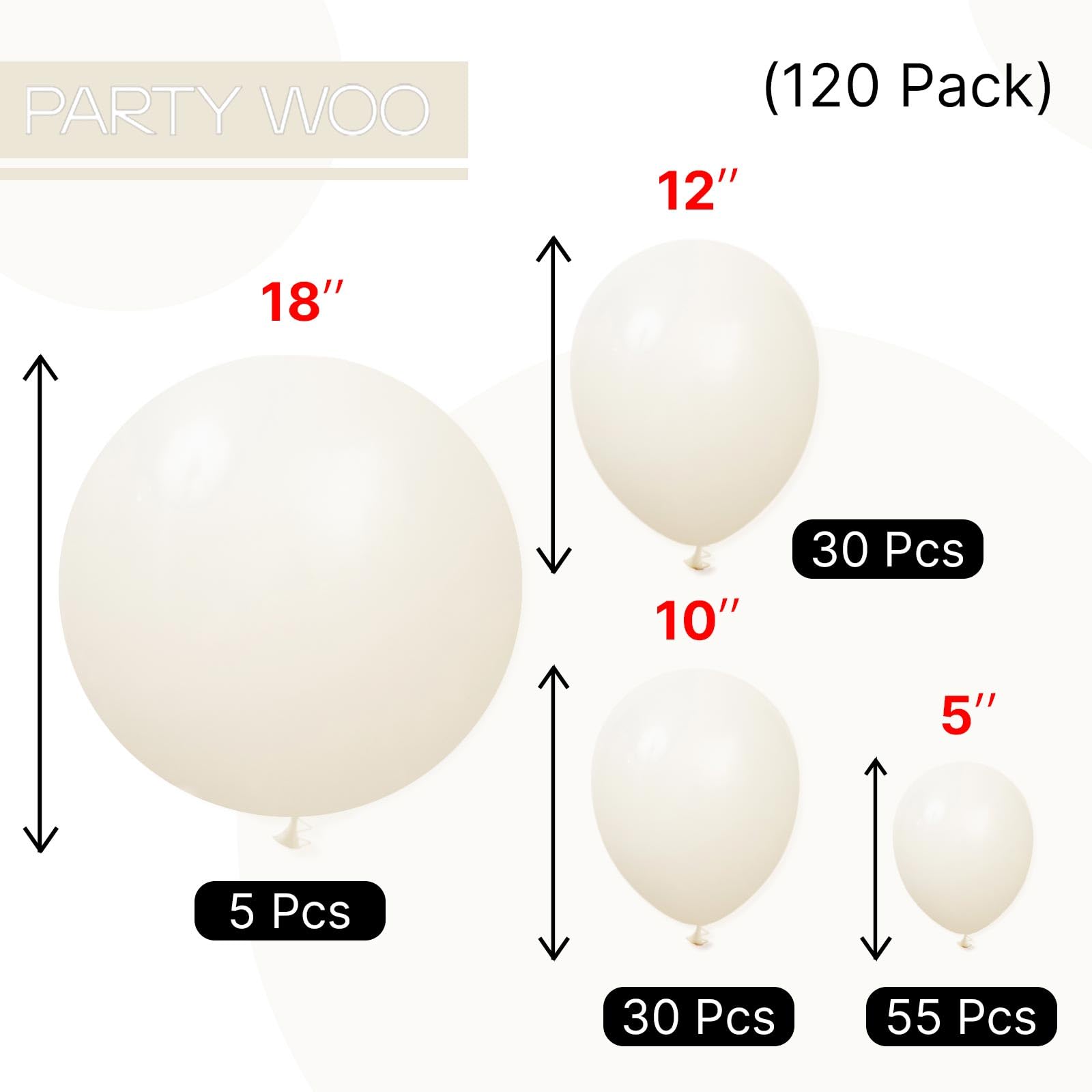 - Package includes: 18 inch beige balloons (5pcs), 12 inch beige balloons (30pcs), 10 inch beige balloons (30pcs), 5 inch beige balloons (55pcs), in a solid consistent color. Pay attentions that the 5 inch balloons could NOT float when inflated with HELIUM.