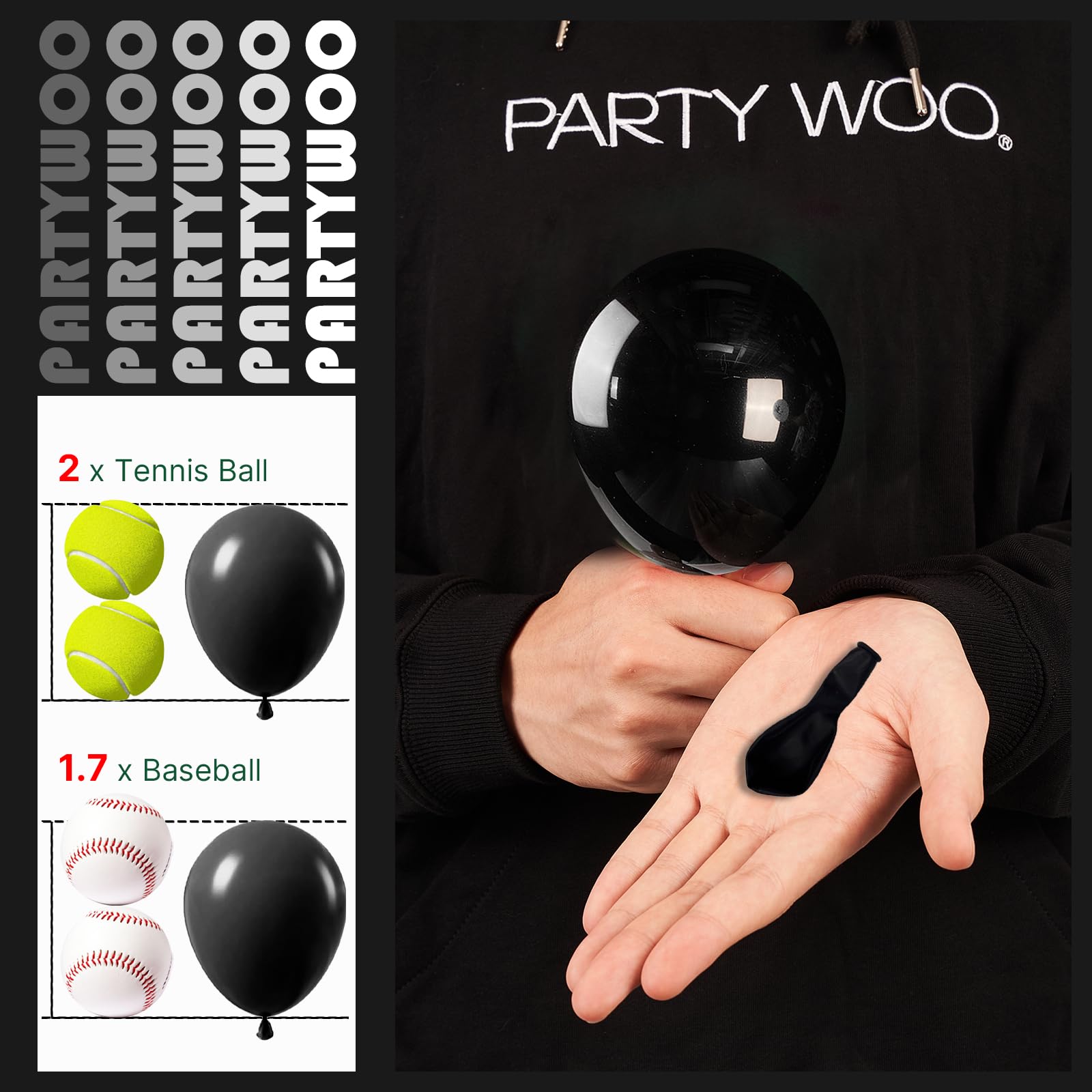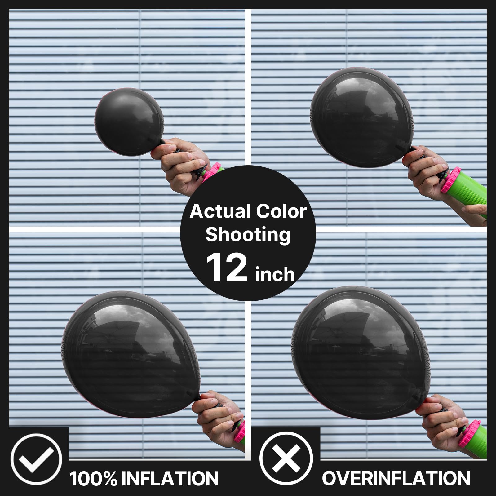 - Attention & Warning: Please DO NOT overfill the black balloons and avoid sunburn, overheat, pointed object and excessive friction. Control the amount of air inflated into each balloon to achieve your ideal balloon size and widely used in party.