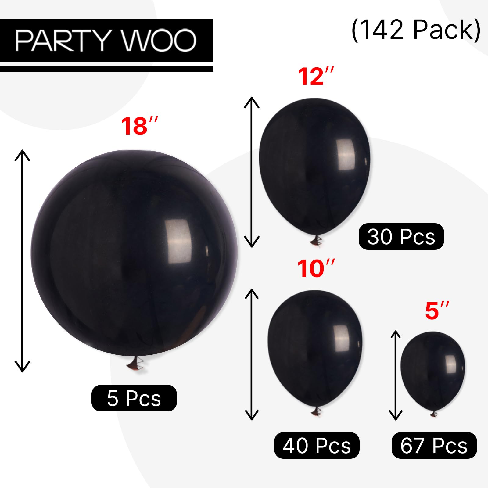 PartyWoo Black Balloons 142 pcs Different Sizes Pack of 18 12 10 5 Inch Matte Black Latex Balloon Arch Kit Garland for Graduation Halloween New Year Anniversary Birthday Party Decorations Black-Y18