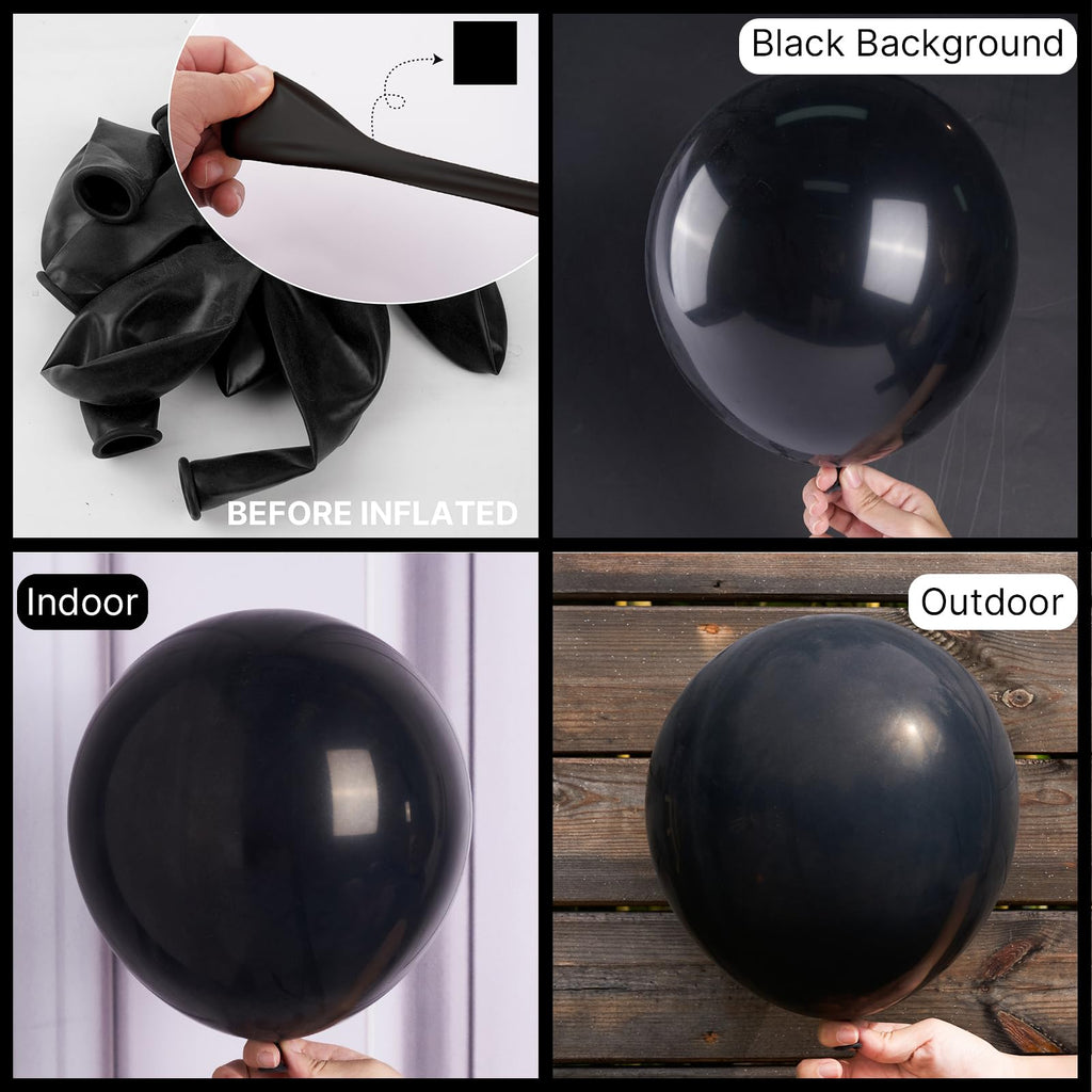 • DEPENDABLE & VERSATILE: The 4 different sizes of black balloons are made of latex, suitable for both adult and children, recommended to use with a balloon hand pump or electric balloon pump