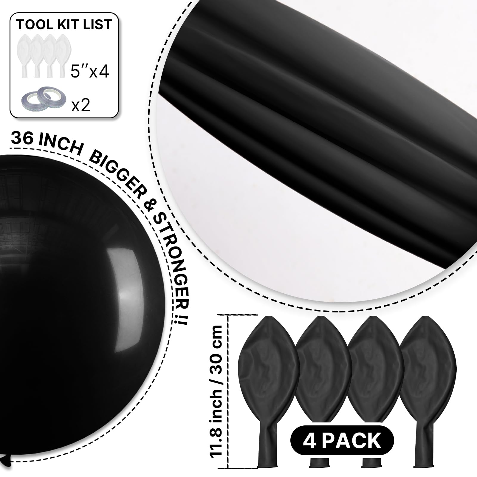 - Package includes: 36 inch black balloons (4 pcs), 5 inch white balloons (4 pcs), ribbons (2 pcs), in a solid consistent color that brings vibrant energy, can widely used in wedding decorations, birthday decorations and baby shower decorations.