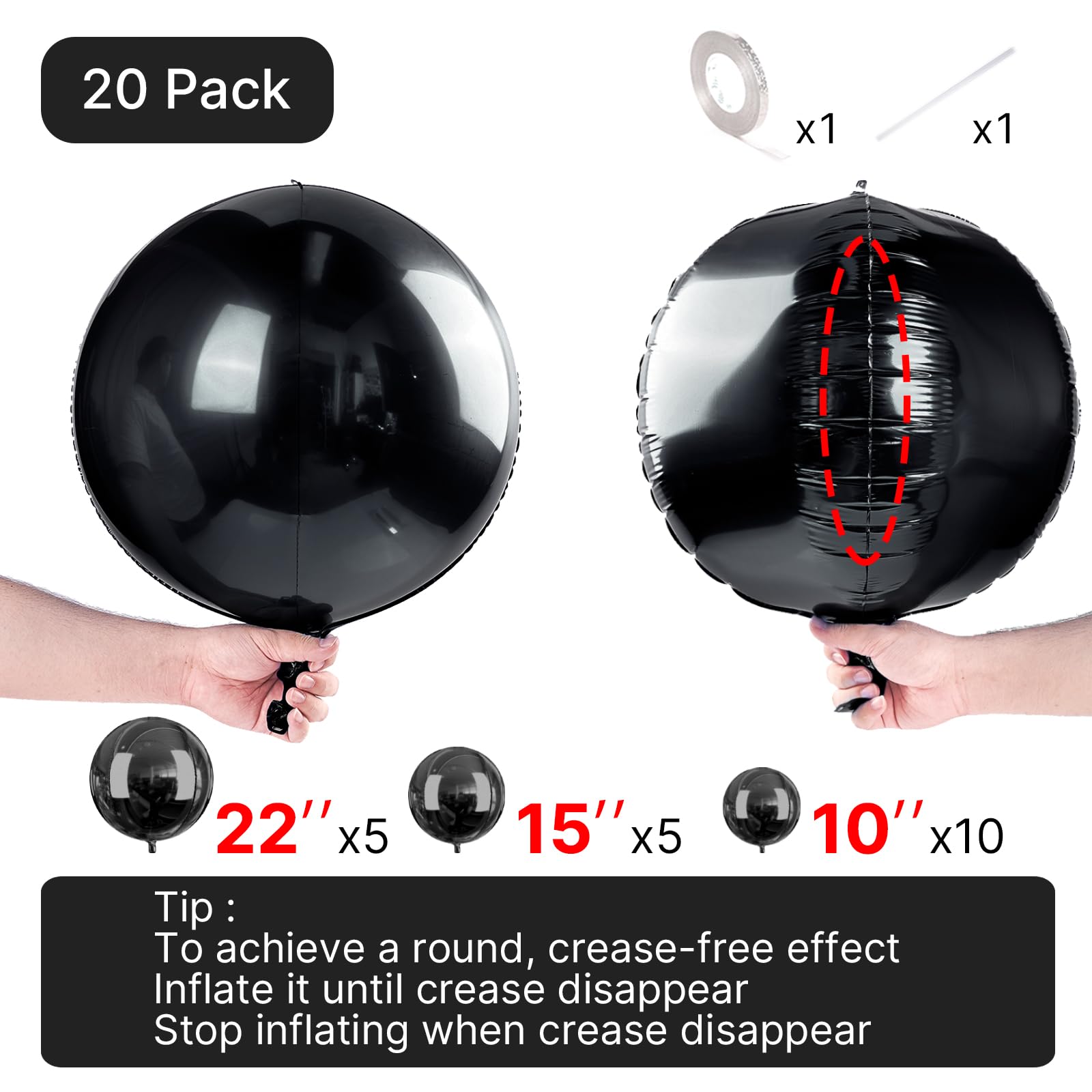- Package Include: You will receive 10 inch 4D foil balloons (10pcs), 15 inch 4D foil balloons (5pcs), 22 inch 4D foil balloons (5pcs), straw (1pc), balloon ribbon (1 roll). Foil balloons under 15 inches cannot float with helium, fill them with air.