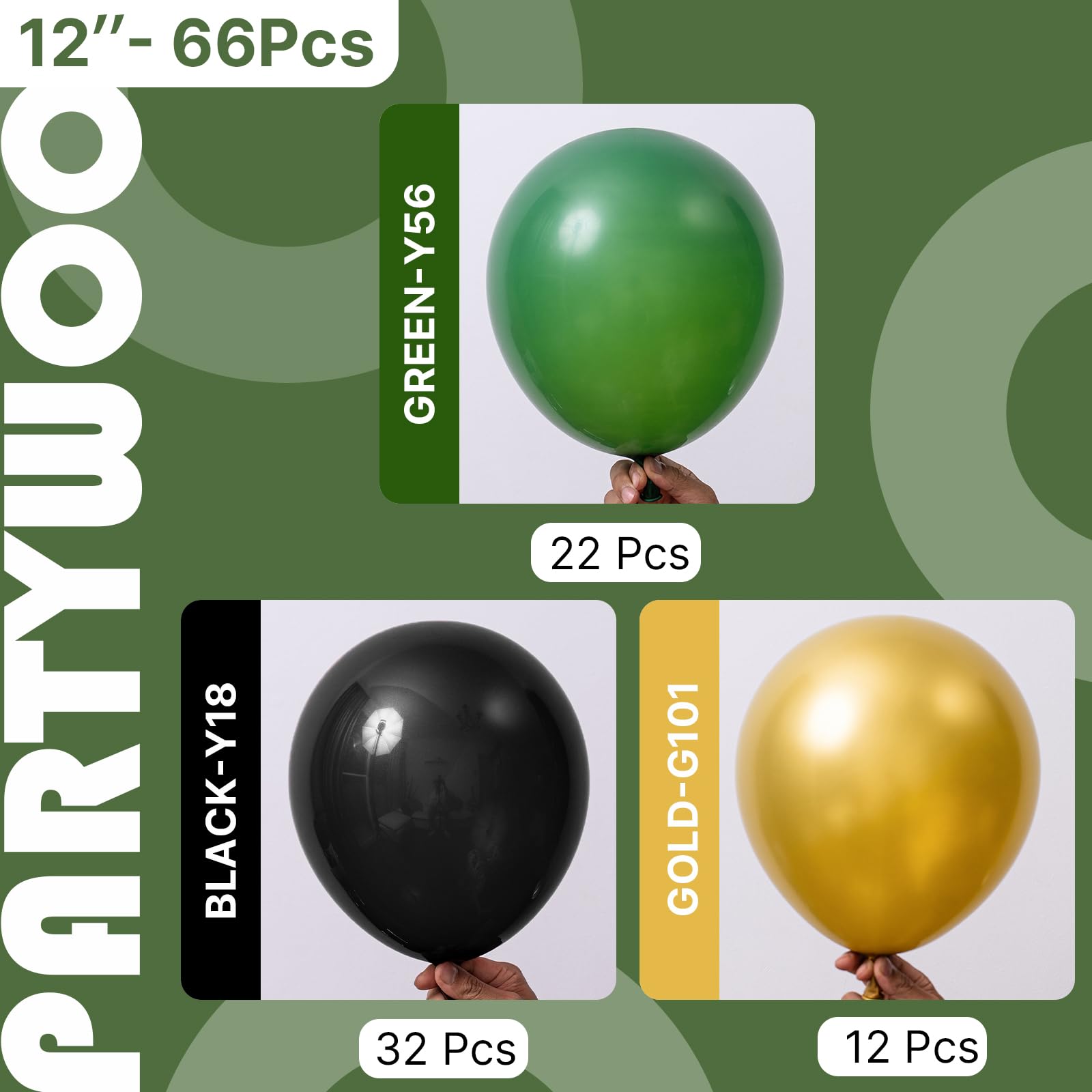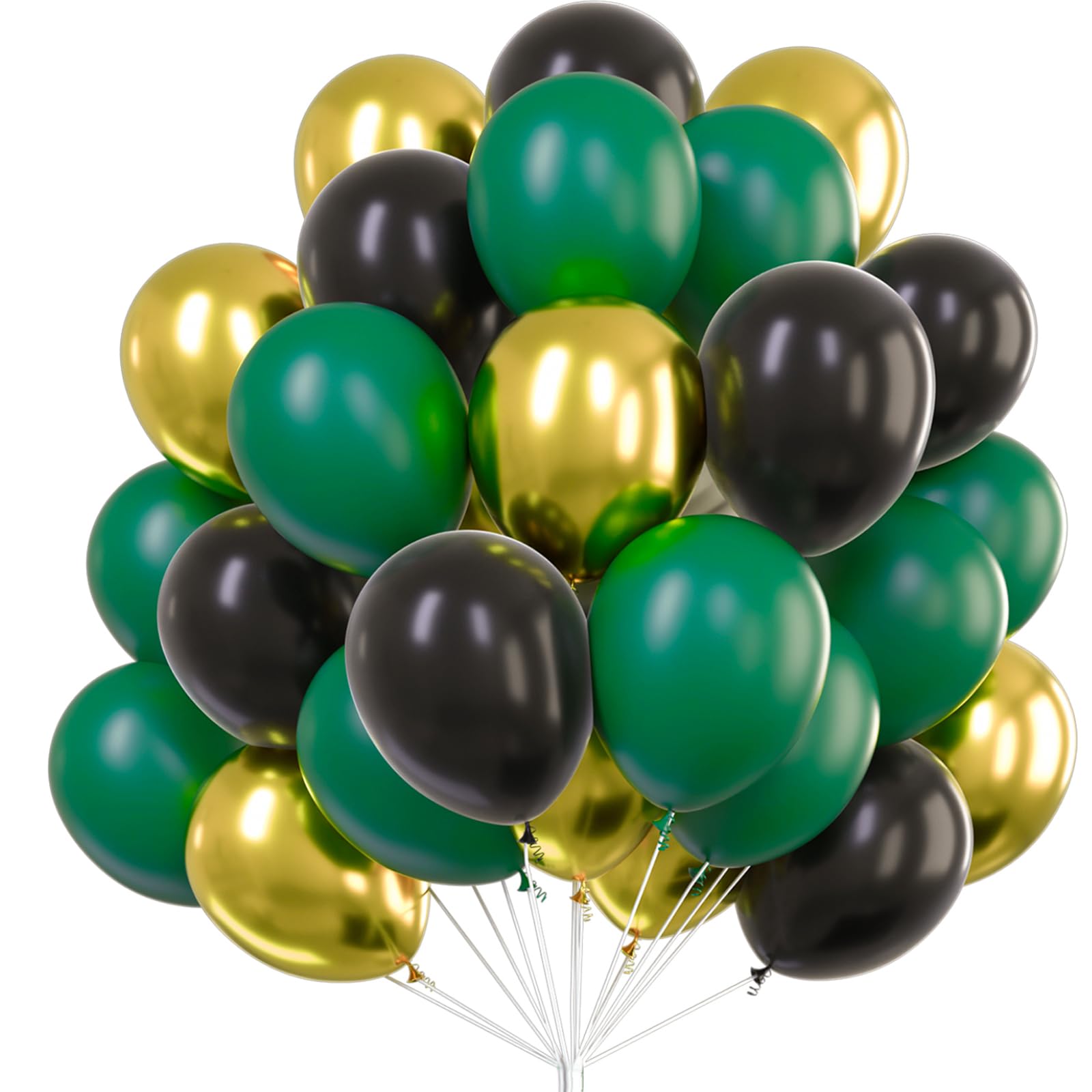 - Package includes: 12 inch black balloons (32 pcs), 12 inch green balloons (22 pcs), 12 inch metallic gold balloons (12 pcs). These black gold and green balloons can widely used in graduation, baby shower, bachelorette, and make your party bright.