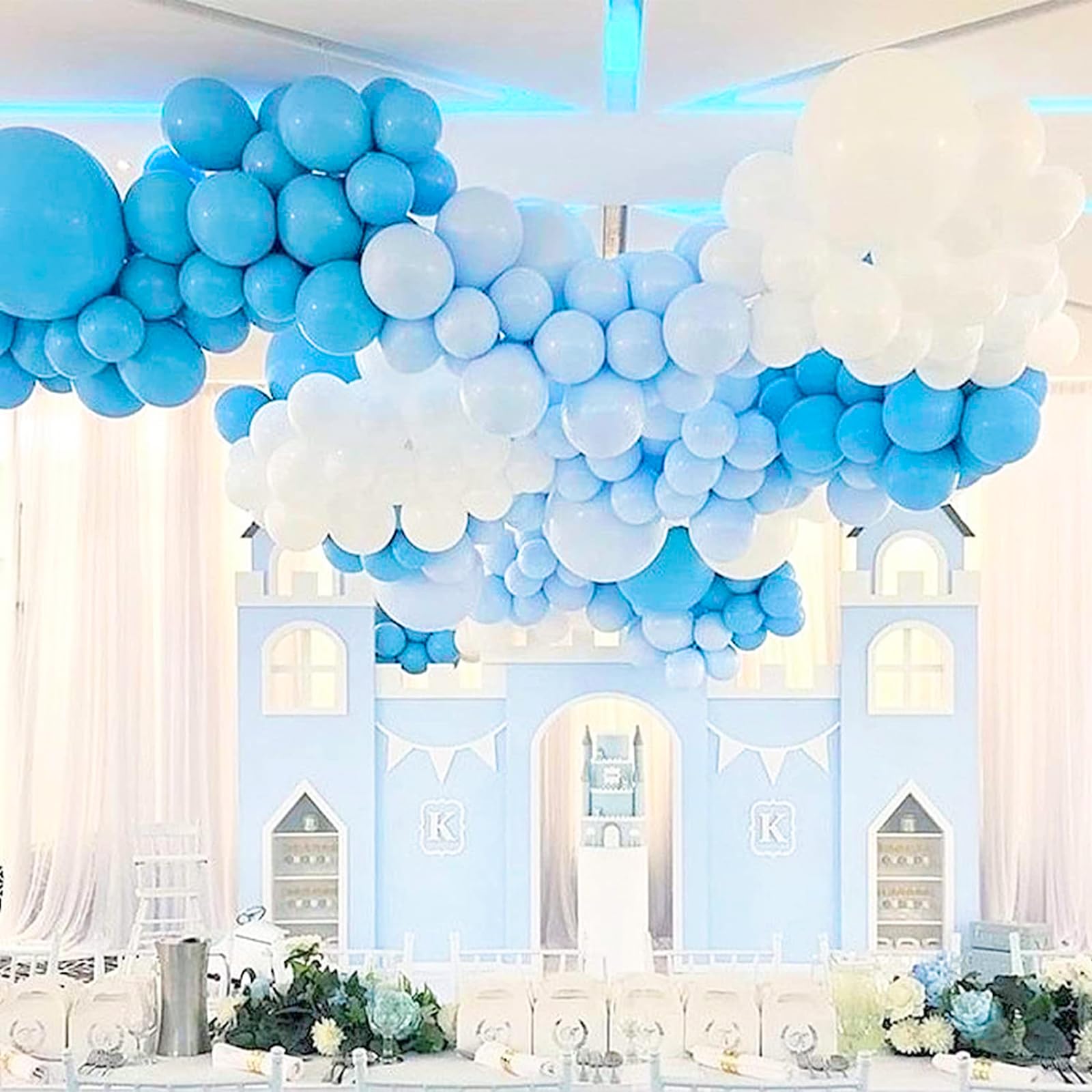 - Package includes: 36 inch light blue balloons (4 pcs), 5 inch white balloons (4 pcs), ribbons (2 pcs), in a solid consistent color that brings vibrant energy, can widely used in wedding decorations, birthday decorations and baby shower decorations.
