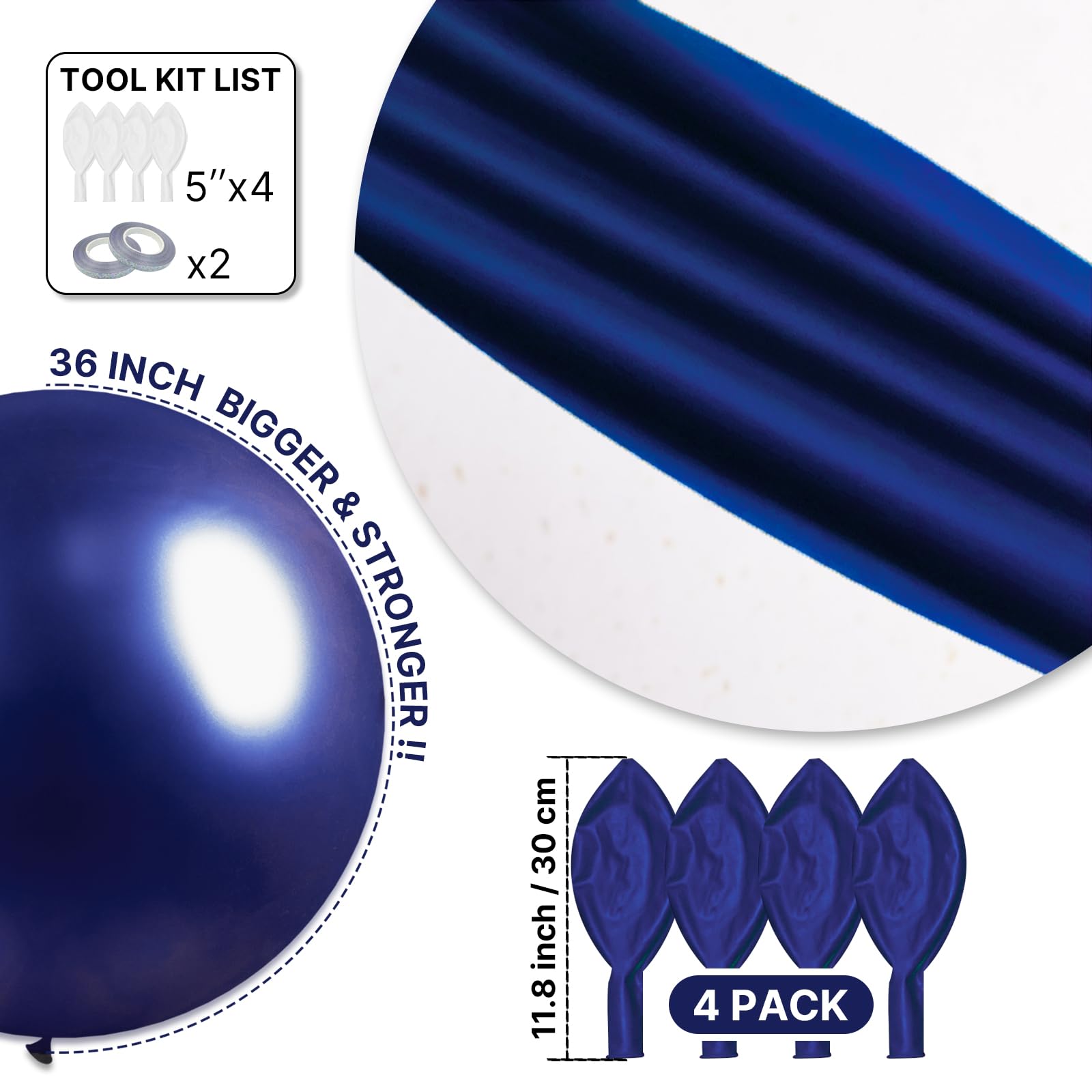 - Package includes: 36 inch navy blue balloons (4 pcs), 5 inch white balloons (4 pcs), ribbons (2 pcs), in a solid consistent color that brings vibrant energy, can widely used in wedding decorations, birthday decorations and baby shower decorations.
