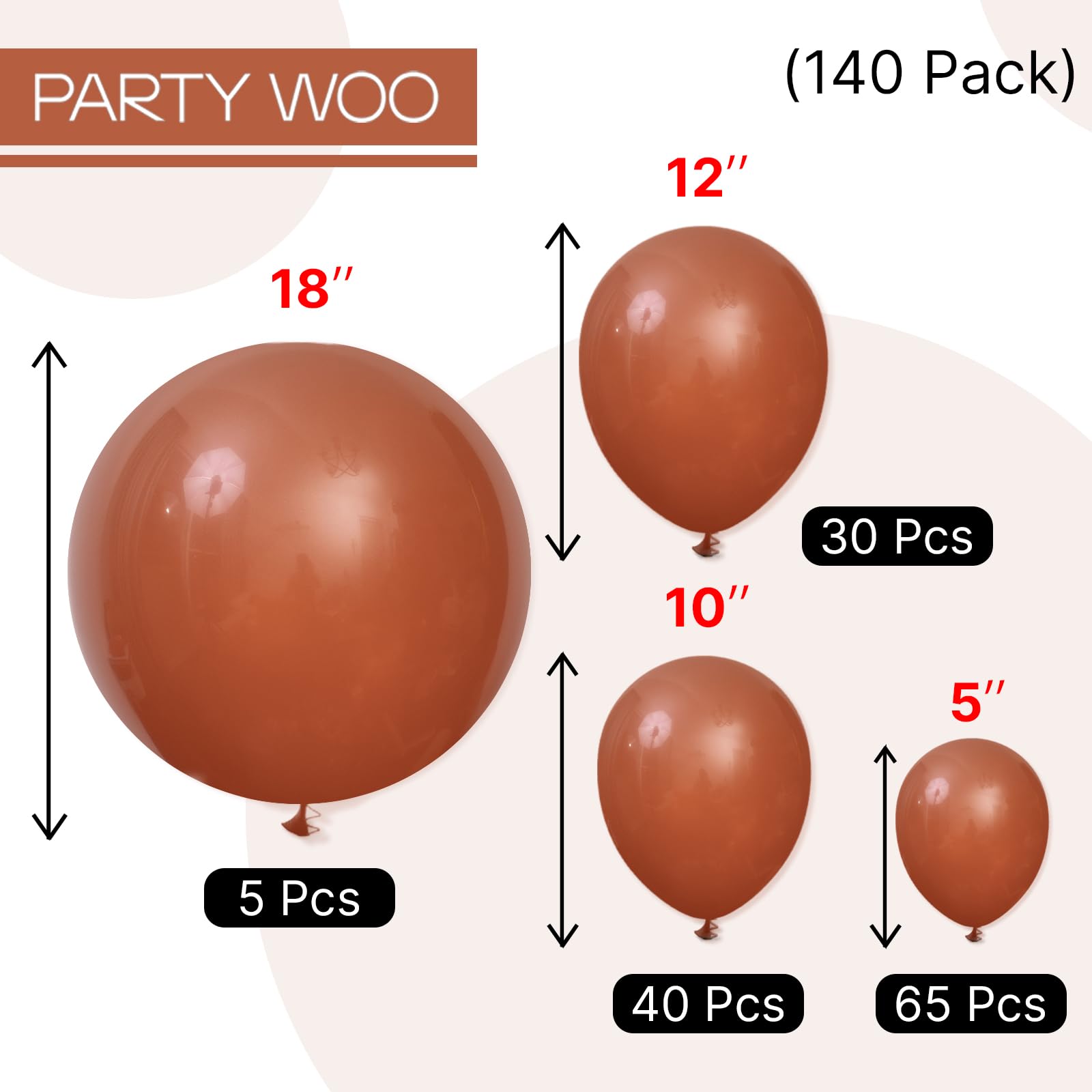 - Package includes: 18 inch dark brown balloons (5pcs), 12 inch dark brown balloons (30pcs), 10 inch dark brown balloons (40pcs), 5 inch dark brown balloons (65pcs), pay attentions that the 5 inch balloons could NOT float when inflated with HELIUM.