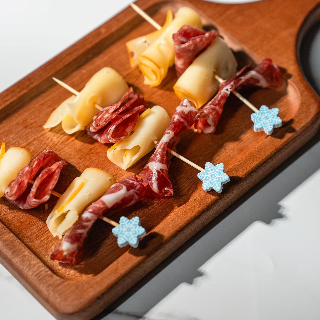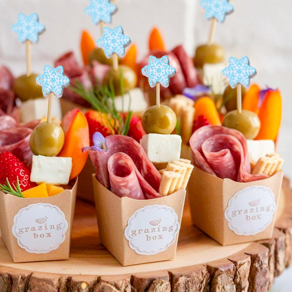 - Add Charms For Your Food: Our sonwflake cocktail sticks are easy to decorate and use in Christmas party. Fancy food picks are a great decoration for charcuterie boards, appetizers, fruit, olives, desserts, sandwiches, buffets, drinks, vegetables.