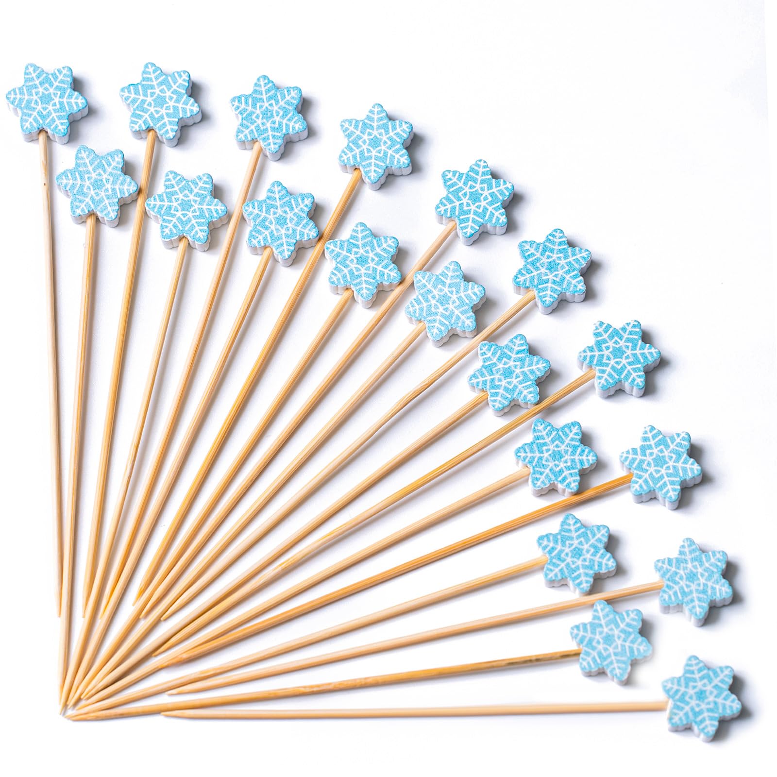 - Unique Design: Our snowflake bamboo picks with looped knot top add style and interest to your food presentation. In contrast to straight toothpicks, it prevents food from falling out, making it easier for you to hold. It can be used in your party.