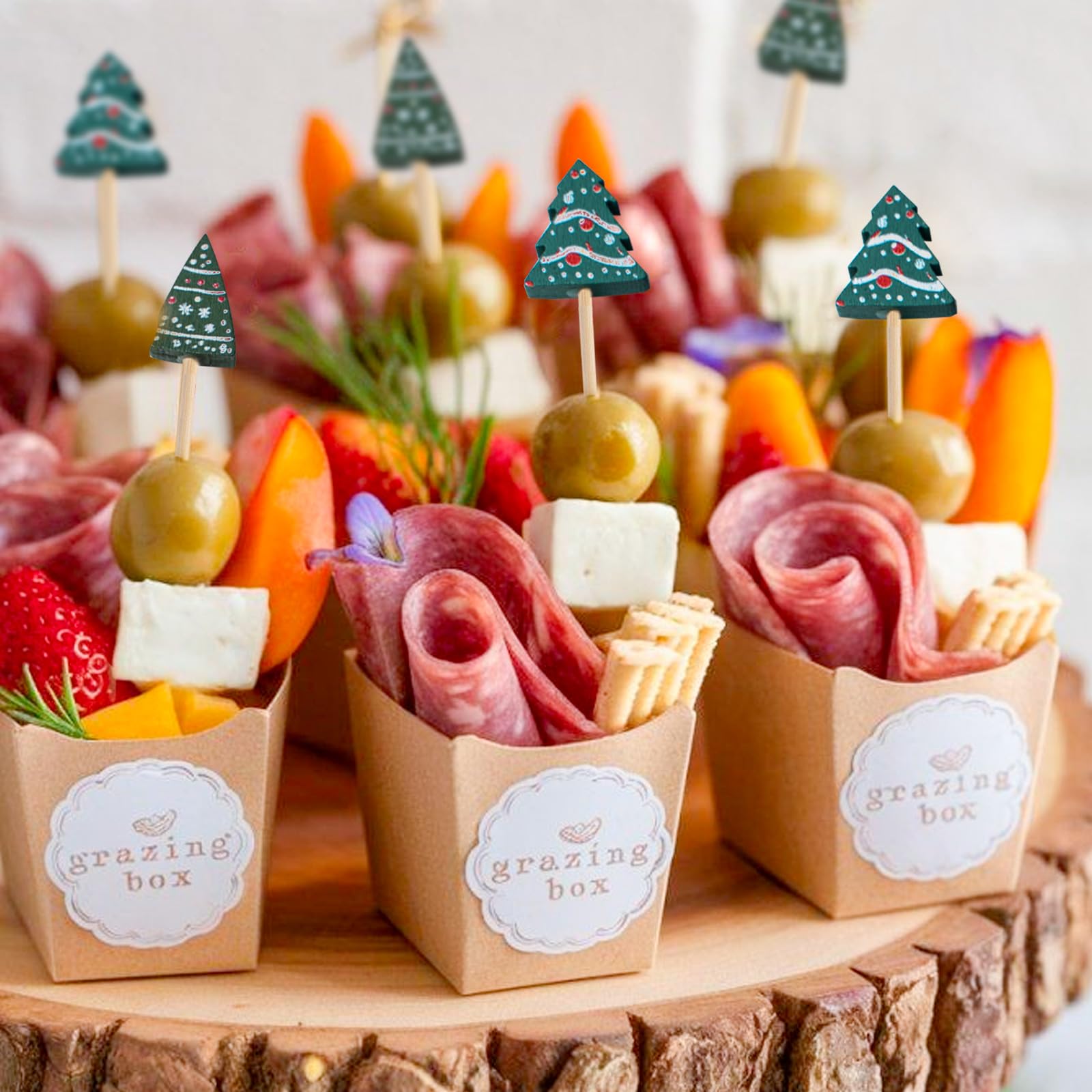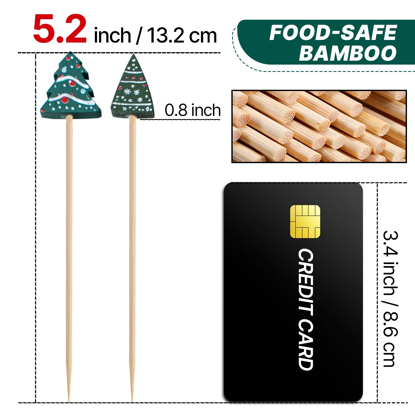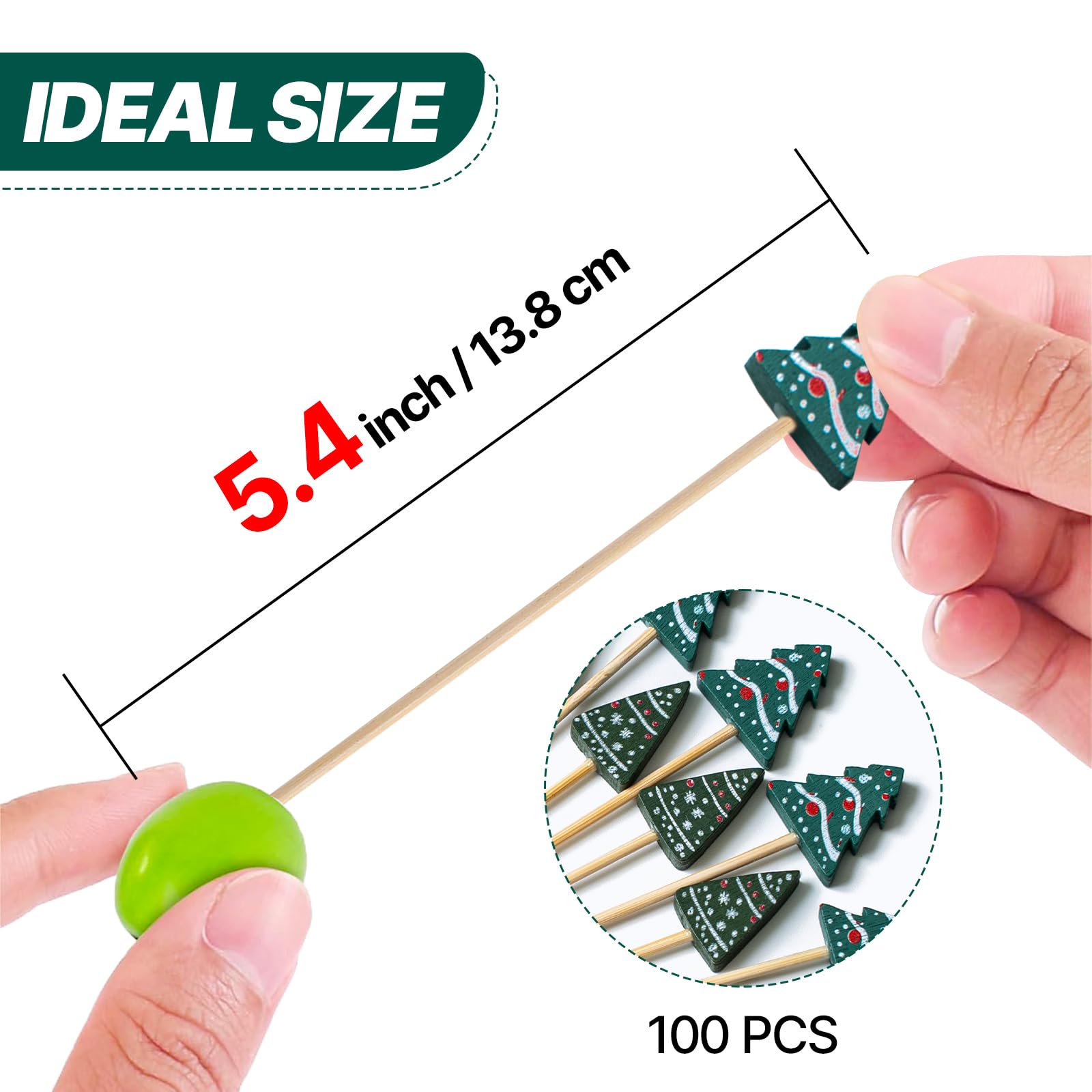 PartyWoo Christmas Tree Cocktail Picks 4.7 Inch 100pcs Bamboo Fancy Skewers Toothpicks for Appetizers Food Drink Fruit Sandwich BBQ Christmas Party Charcuterie Boards Accessories Party Supplies