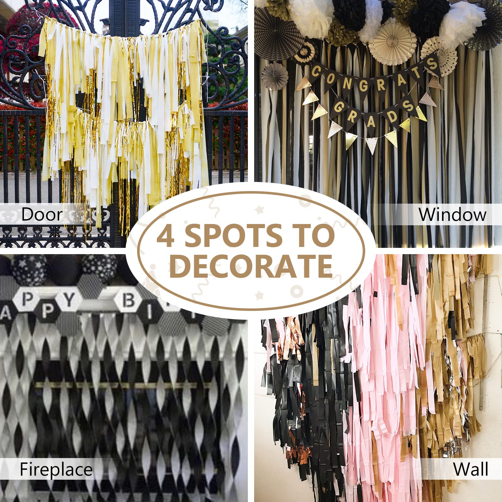 PartyWoo Crepe Paper Streamers 4 Rolls 328ft, Pack of Black and Gold Crepe Paper for Party, Wedding, Birthday, New Year's Eve Decorations (1.8 Inch x 82 Ft/Roll)