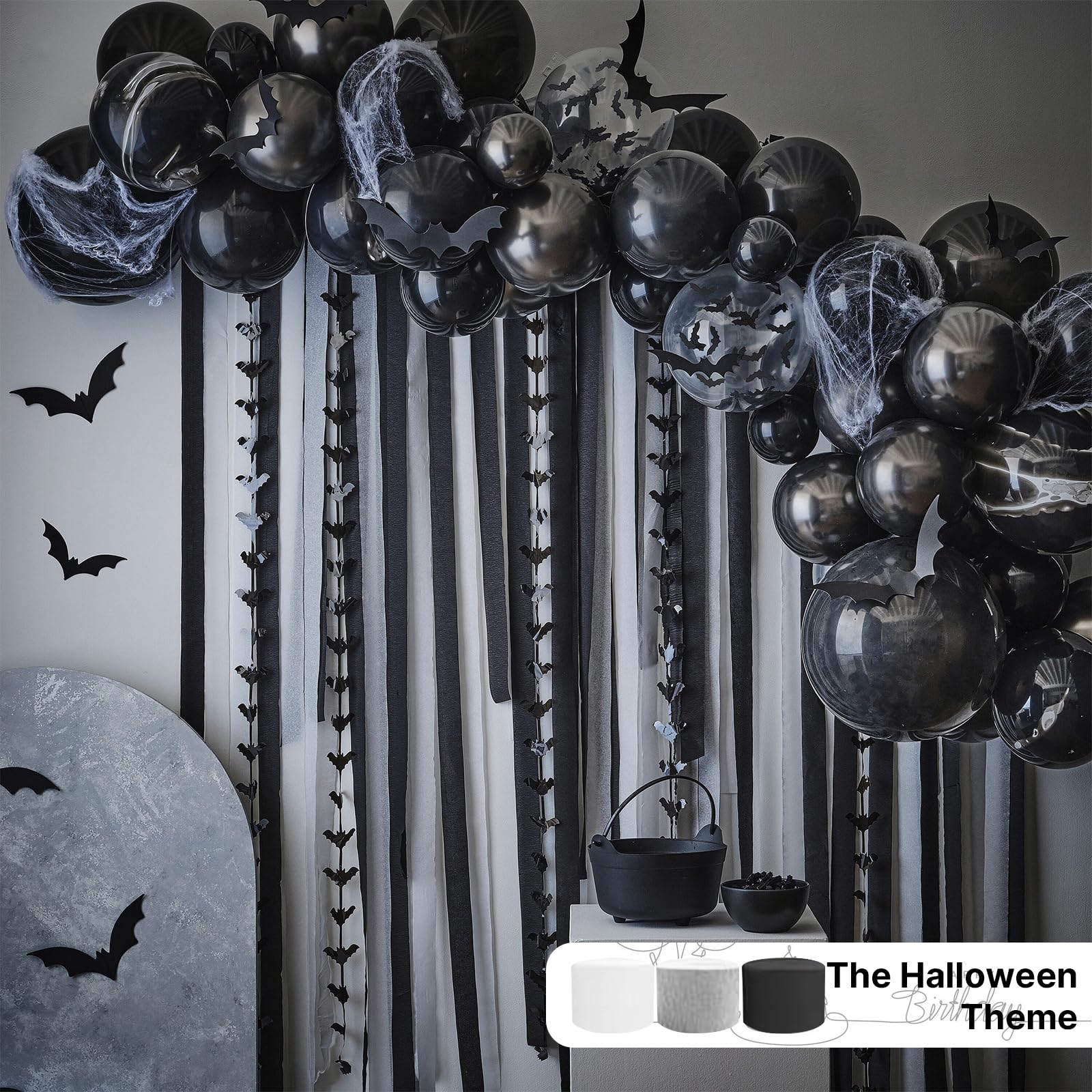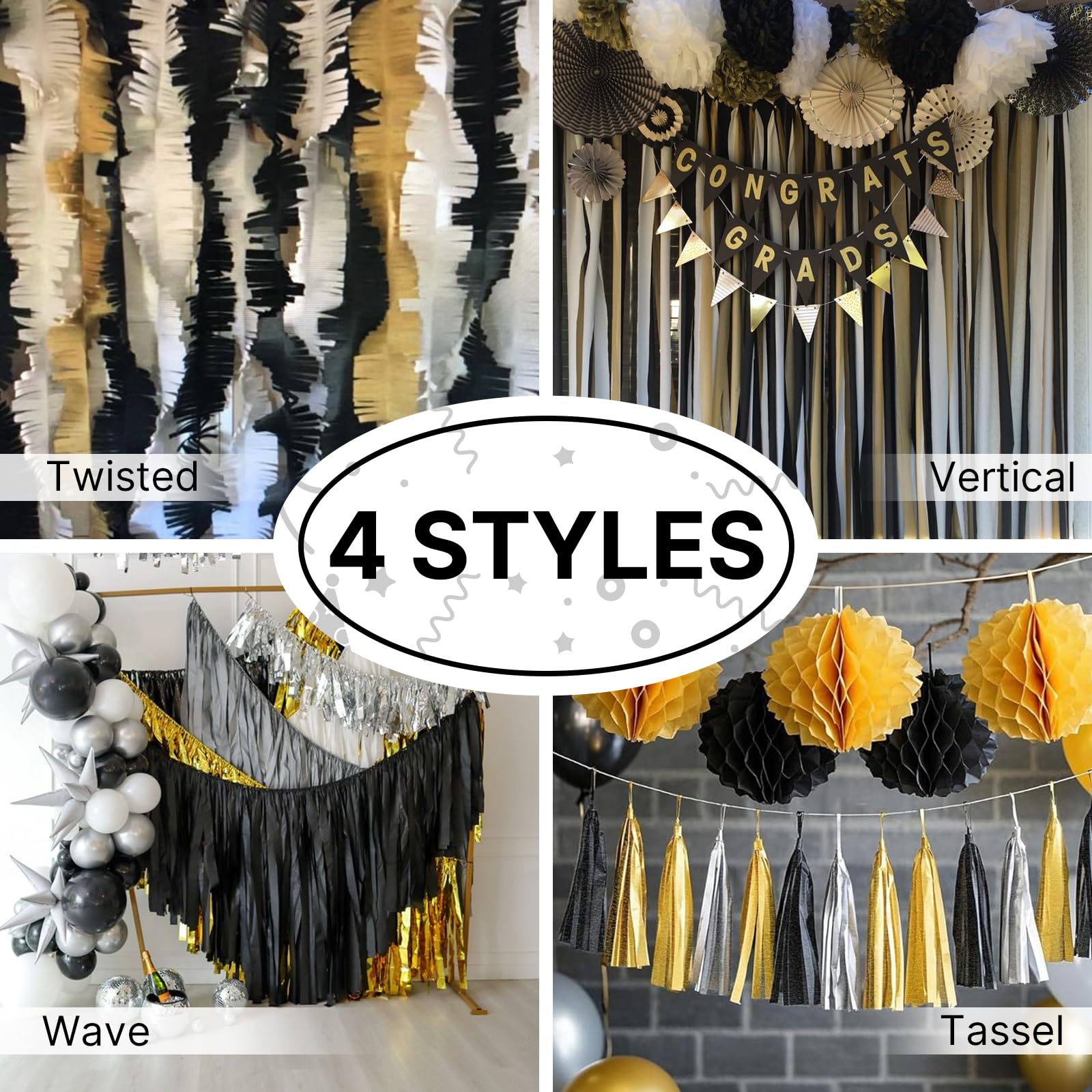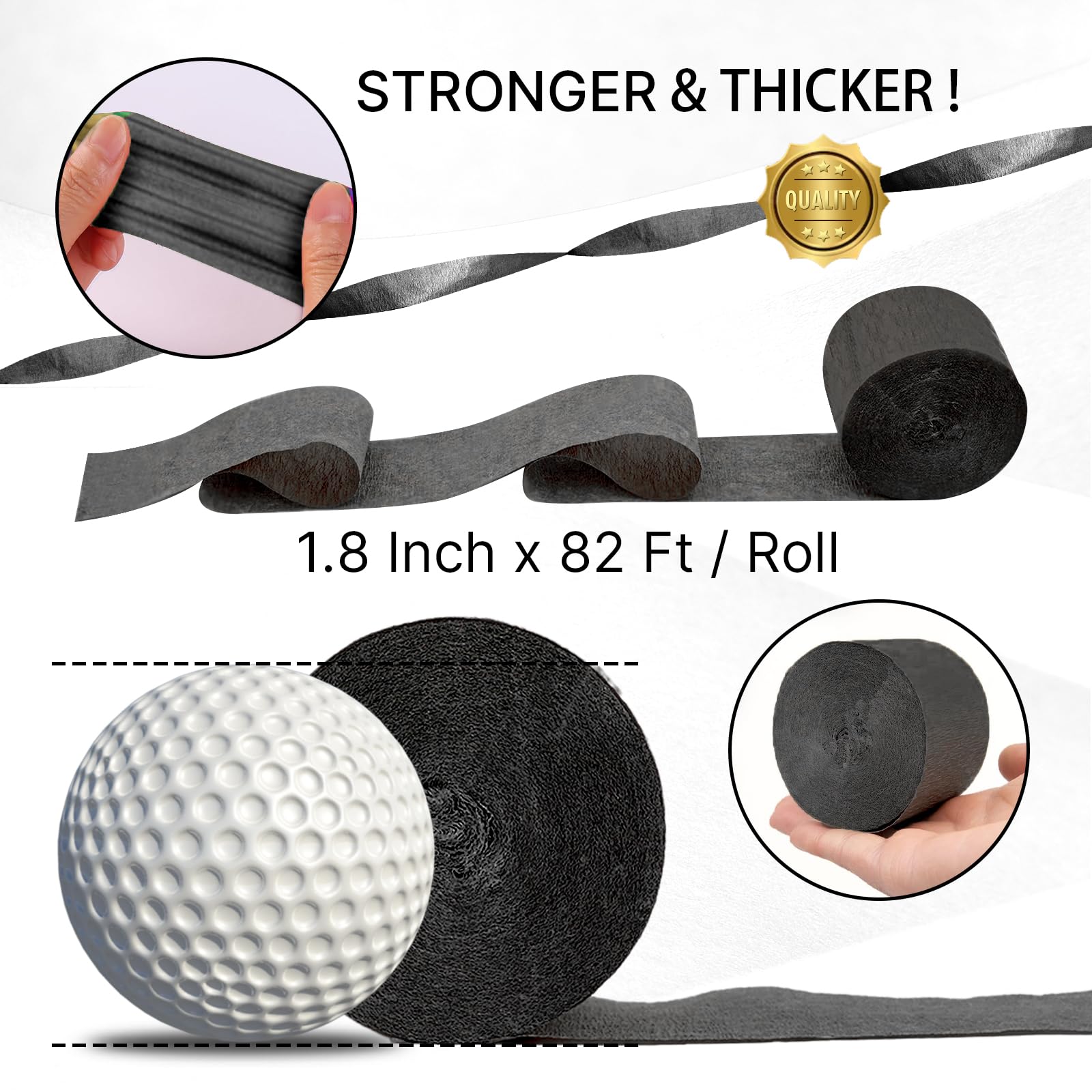 PartyWoo Black Crepe Paper Streamers 4 Rolls 328 ft Pack of Black Crepe Paper for Graduation Halloween New Year Anniversary Birthday Party Decorations (1.8 Inch x 82 Ft/Roll), Black-19